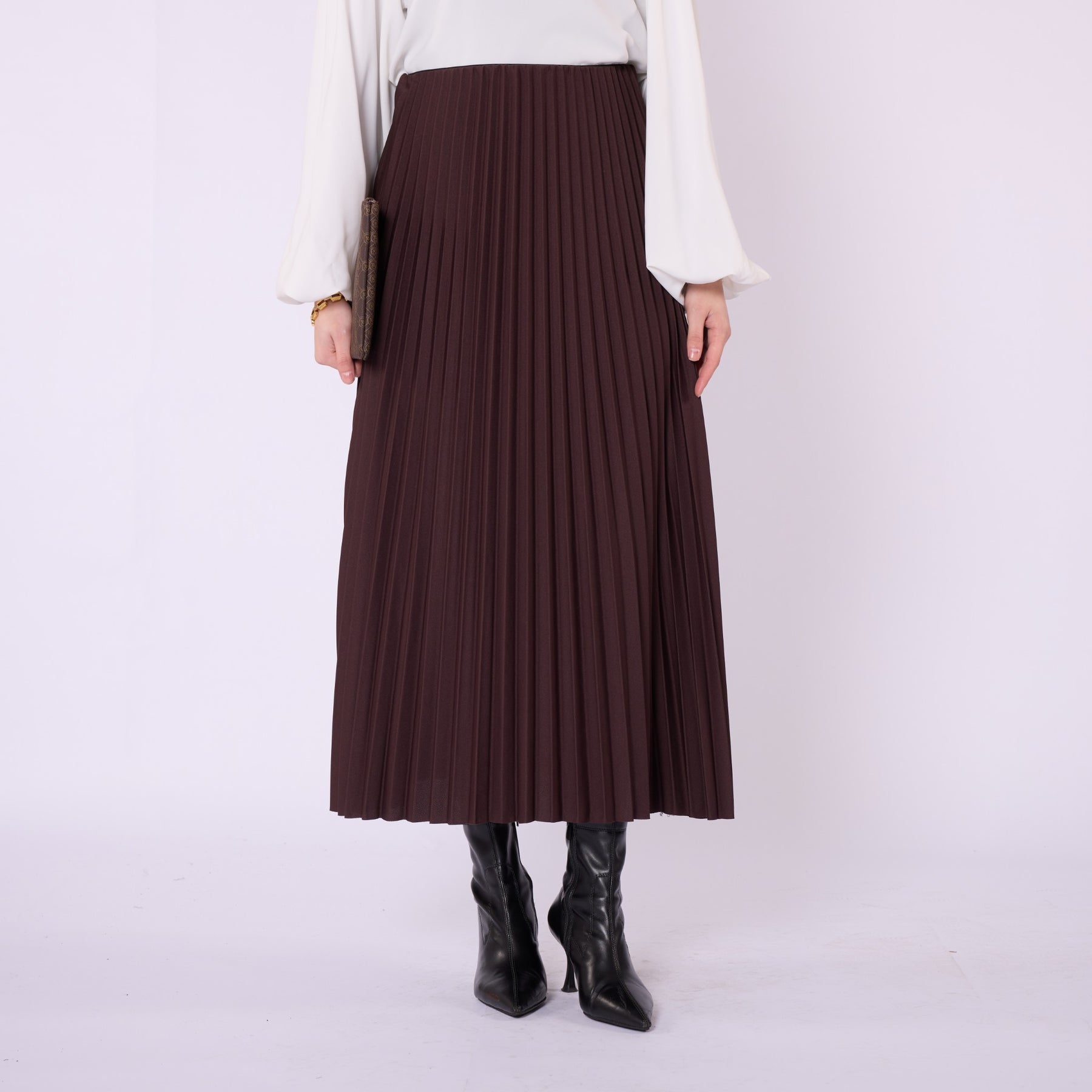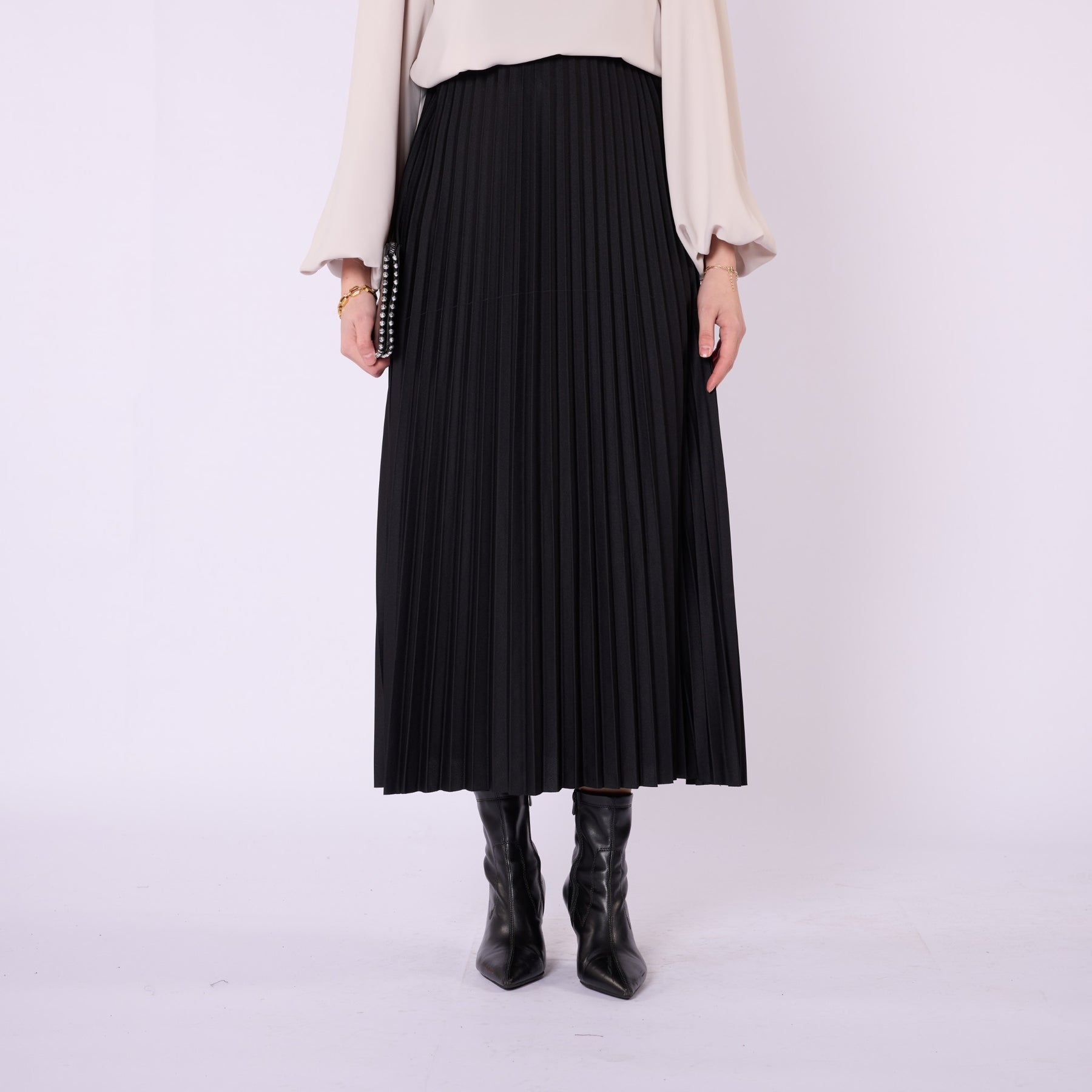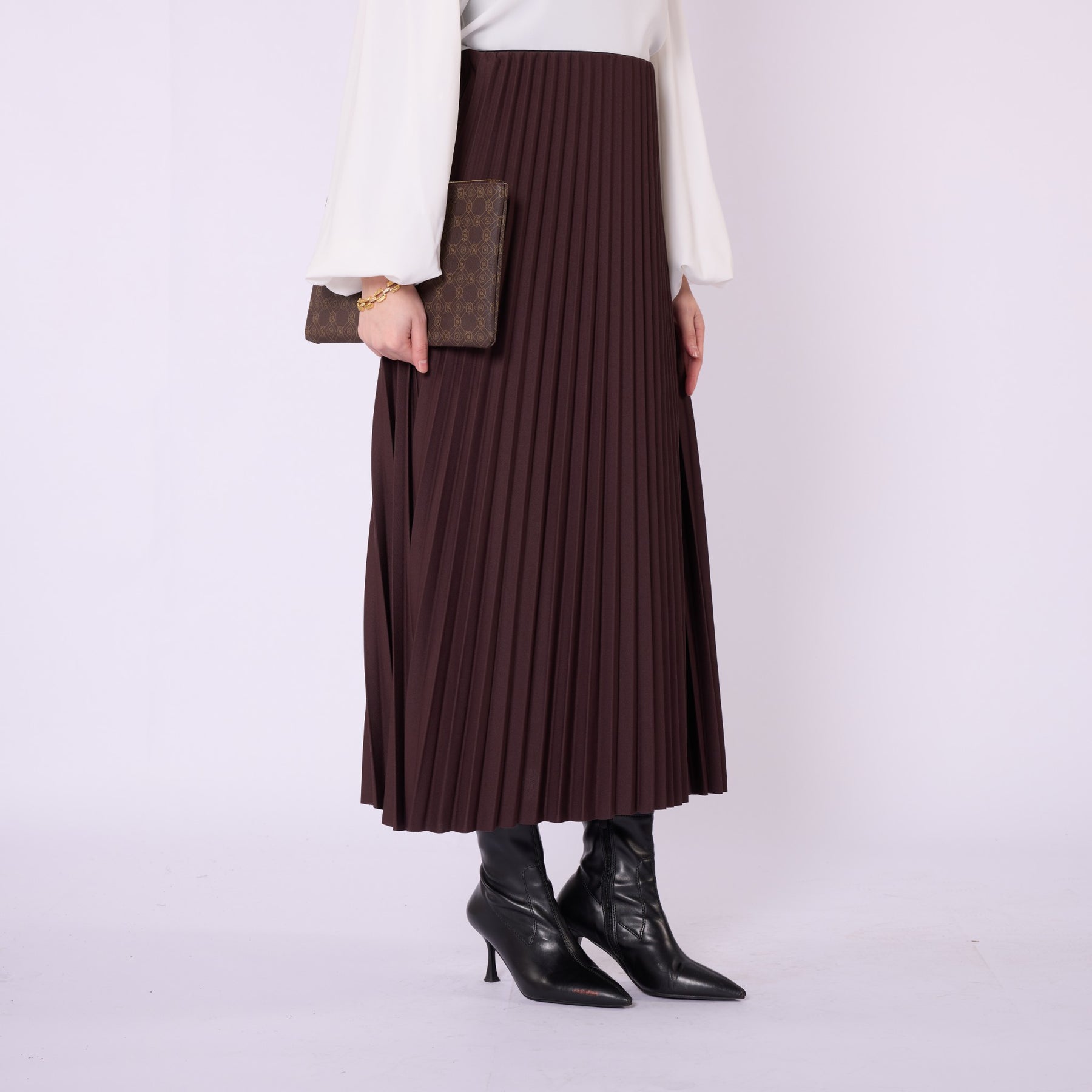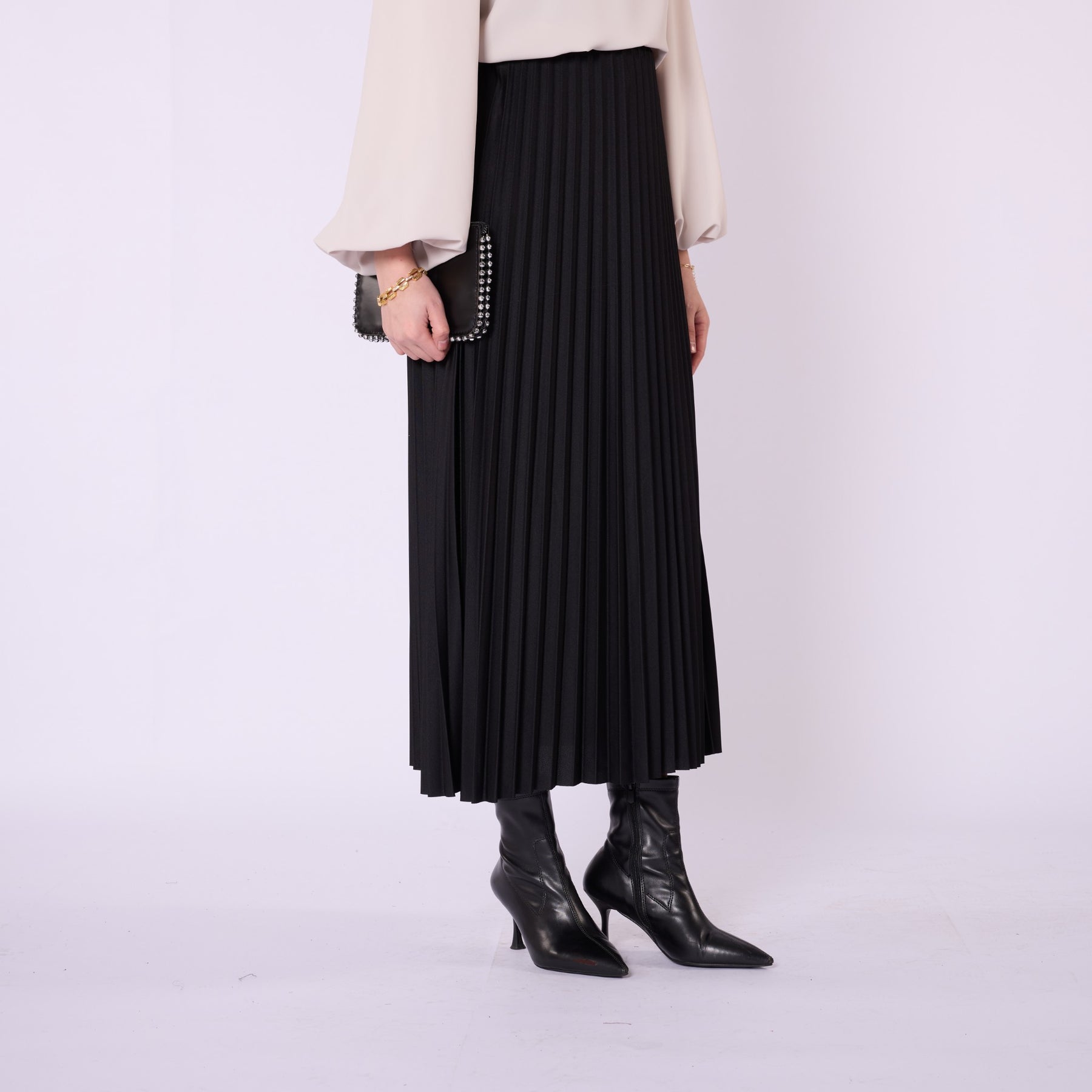 This pleated midi skirt offers a balanced blend of comfort and elegance for the winter season. Crafted from 100% polyester, it features a fluid drape while remaining unlined for a lightweight feel. The concealed elastic waistband provides all-day comfort without disrupting the clean, minimal appearance.