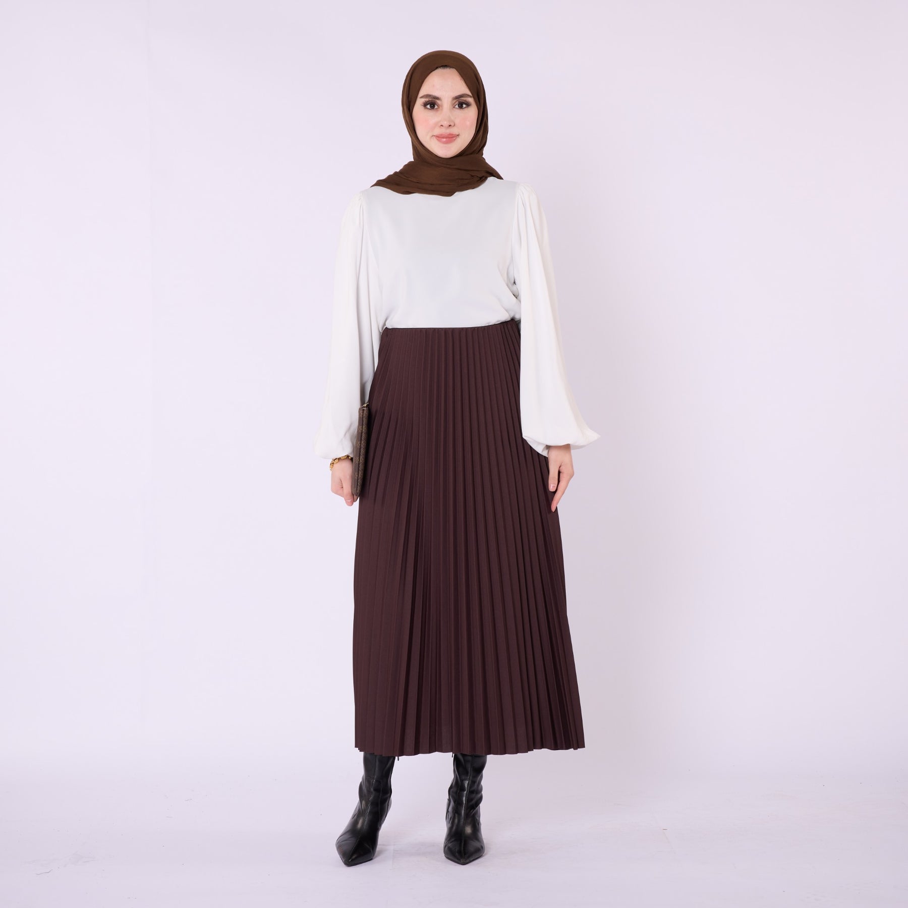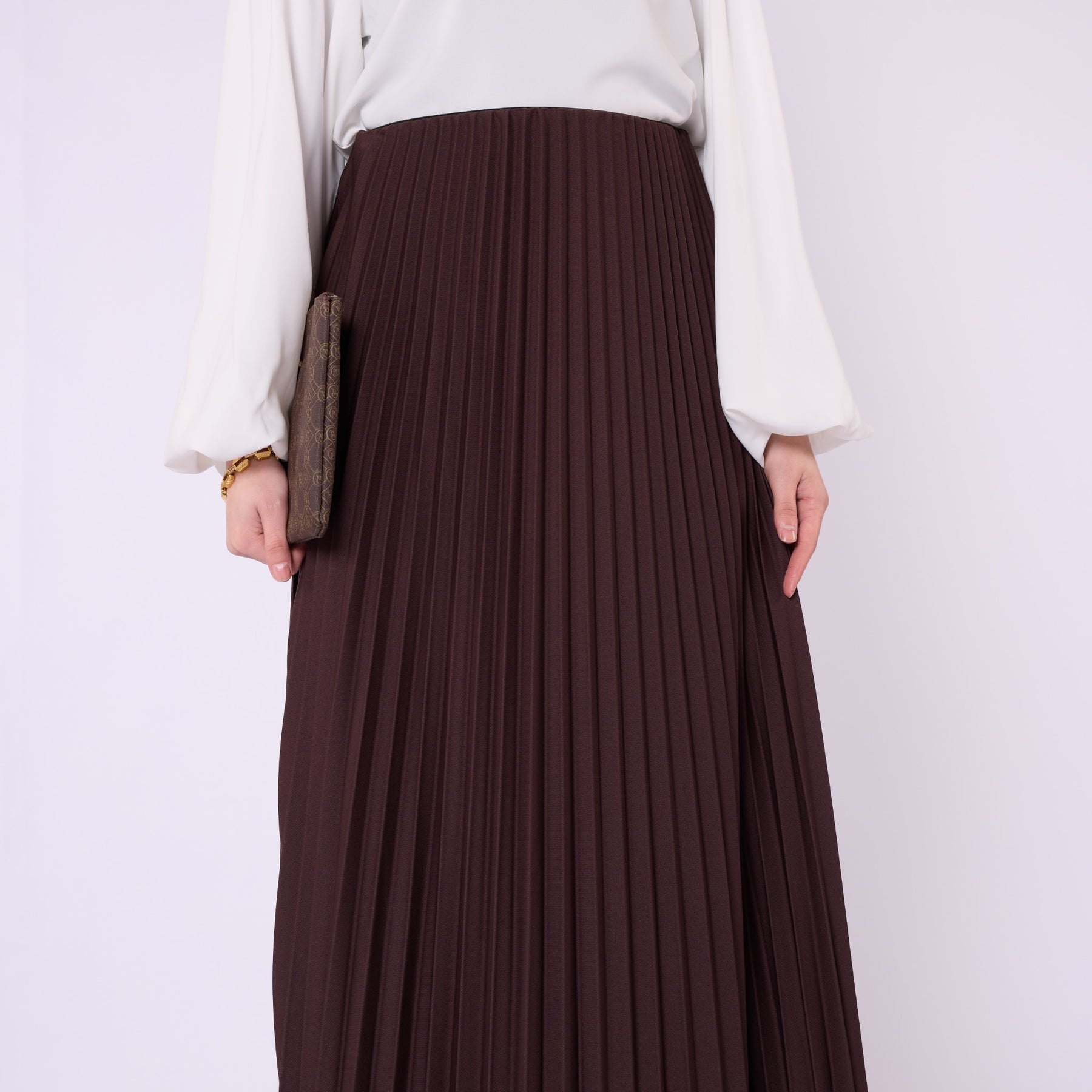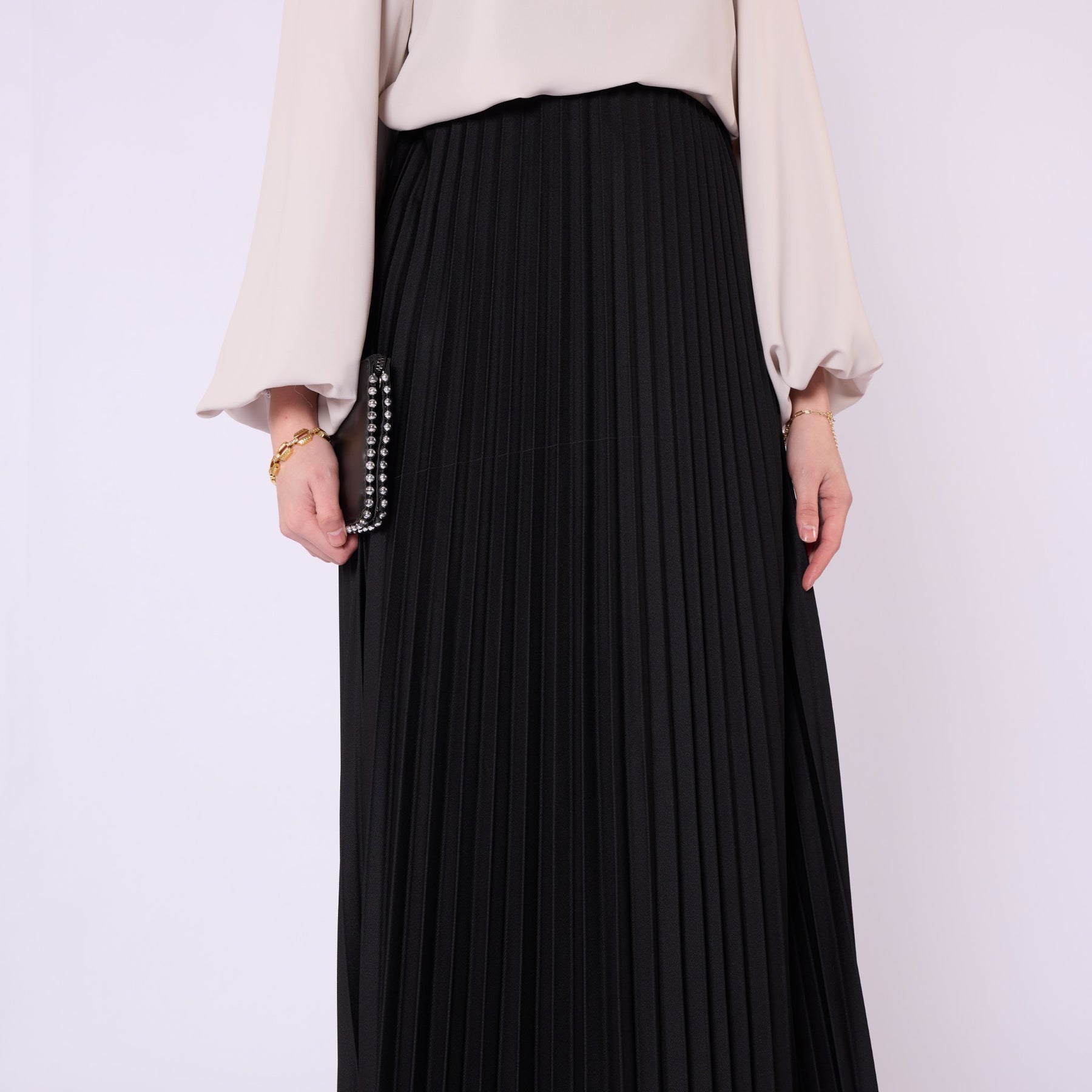 This pleated midi skirt offers a balanced blend of comfort and elegance for the winter season. Crafted from 100% polyester, it features a fluid drape while remaining unlined for a lightweight feel. The concealed elastic waistband provides all-day comfort without disrupting the clean, minimal appearance.