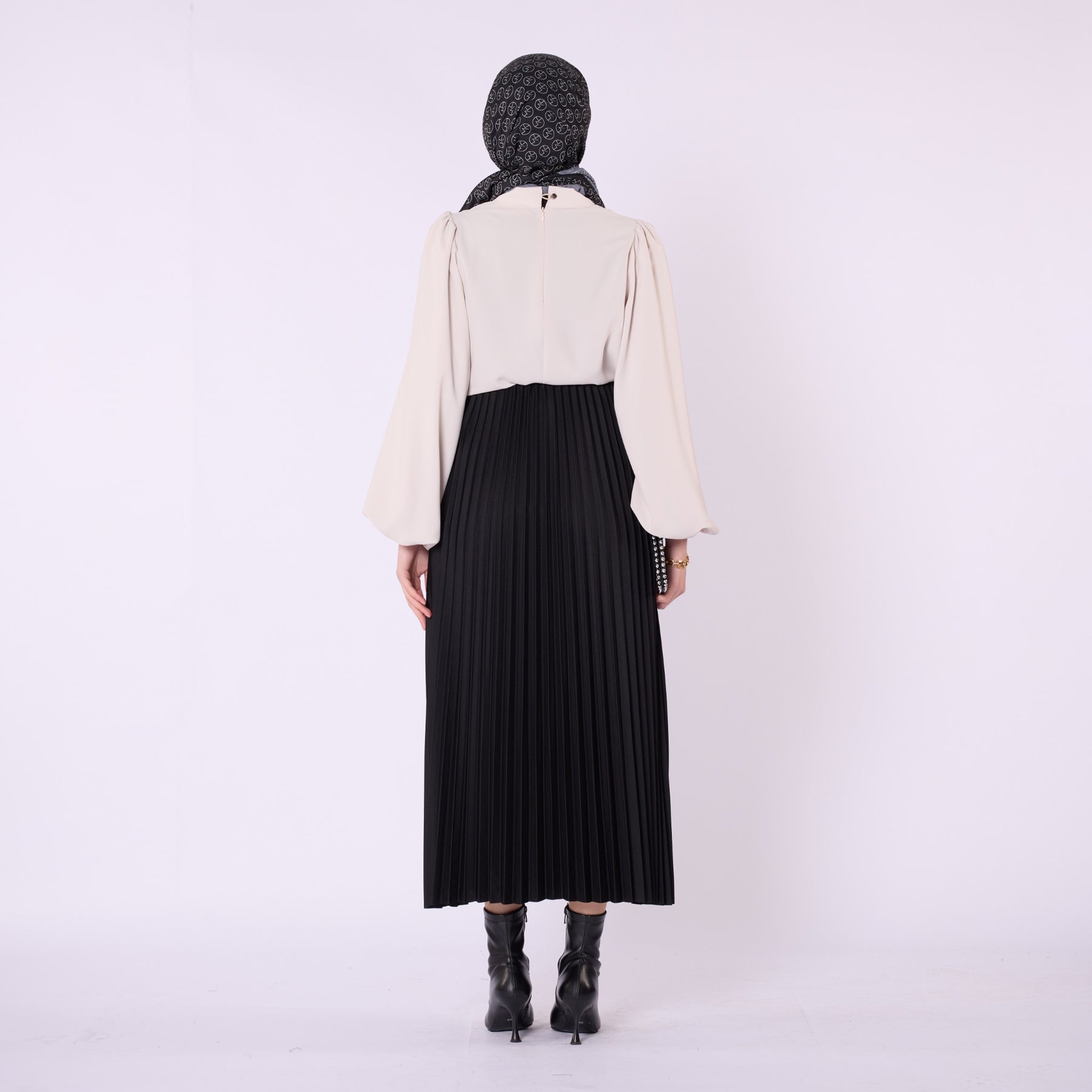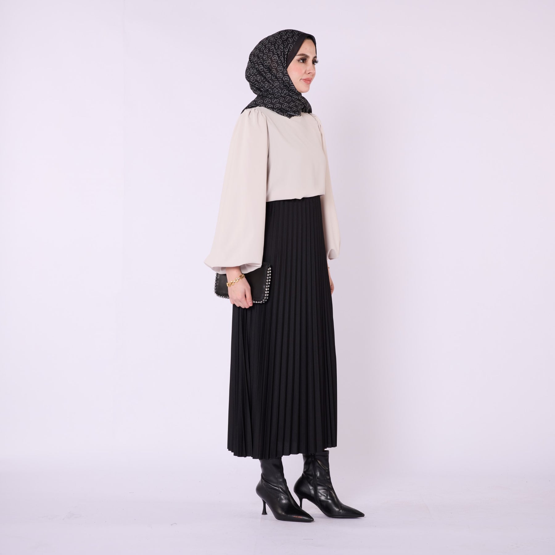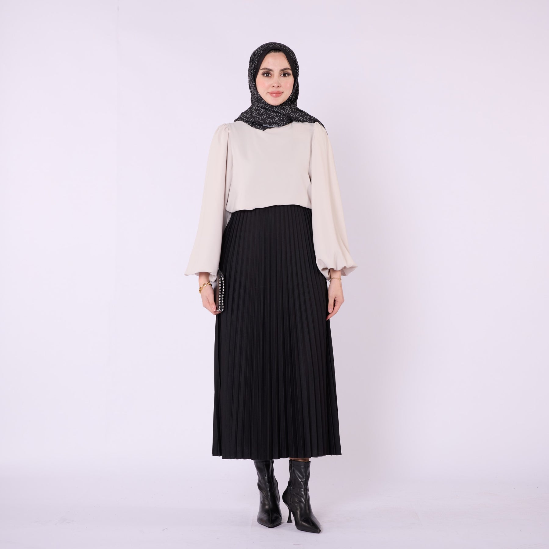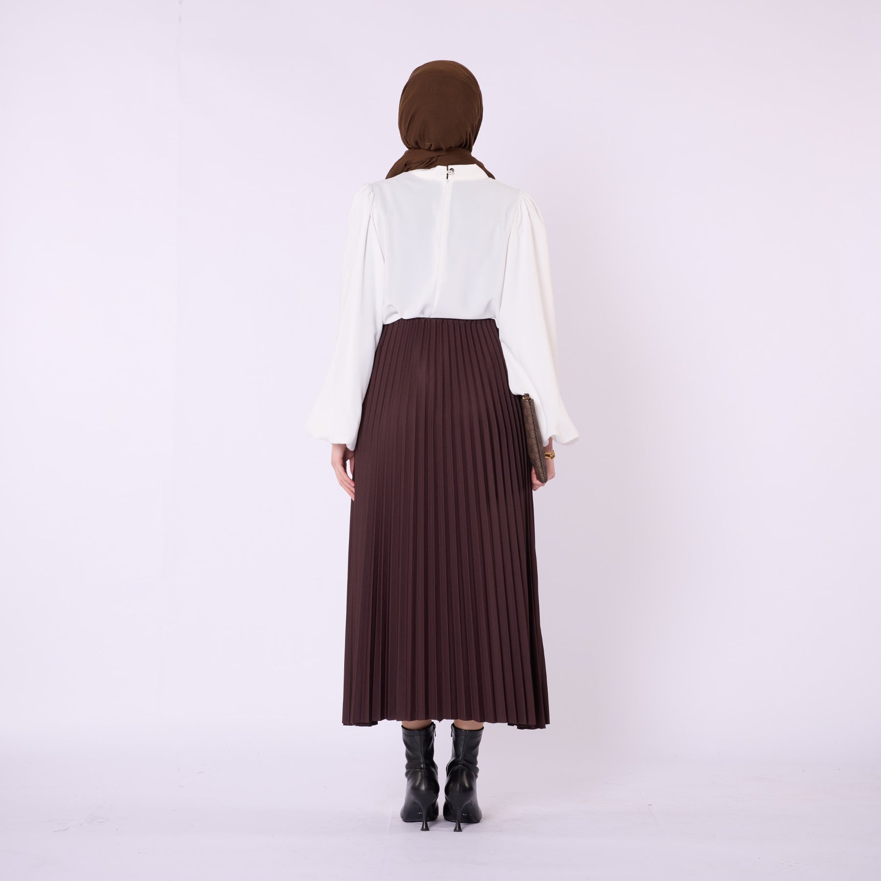 This pleated midi skirt offers a balanced blend of comfort and elegance for the winter season. Crafted from 100% polyester, it features a fluid drape while remaining unlined for a lightweight feel. The concealed elastic waistband provides all-day comfort without disrupting the clean, minimal appearance.