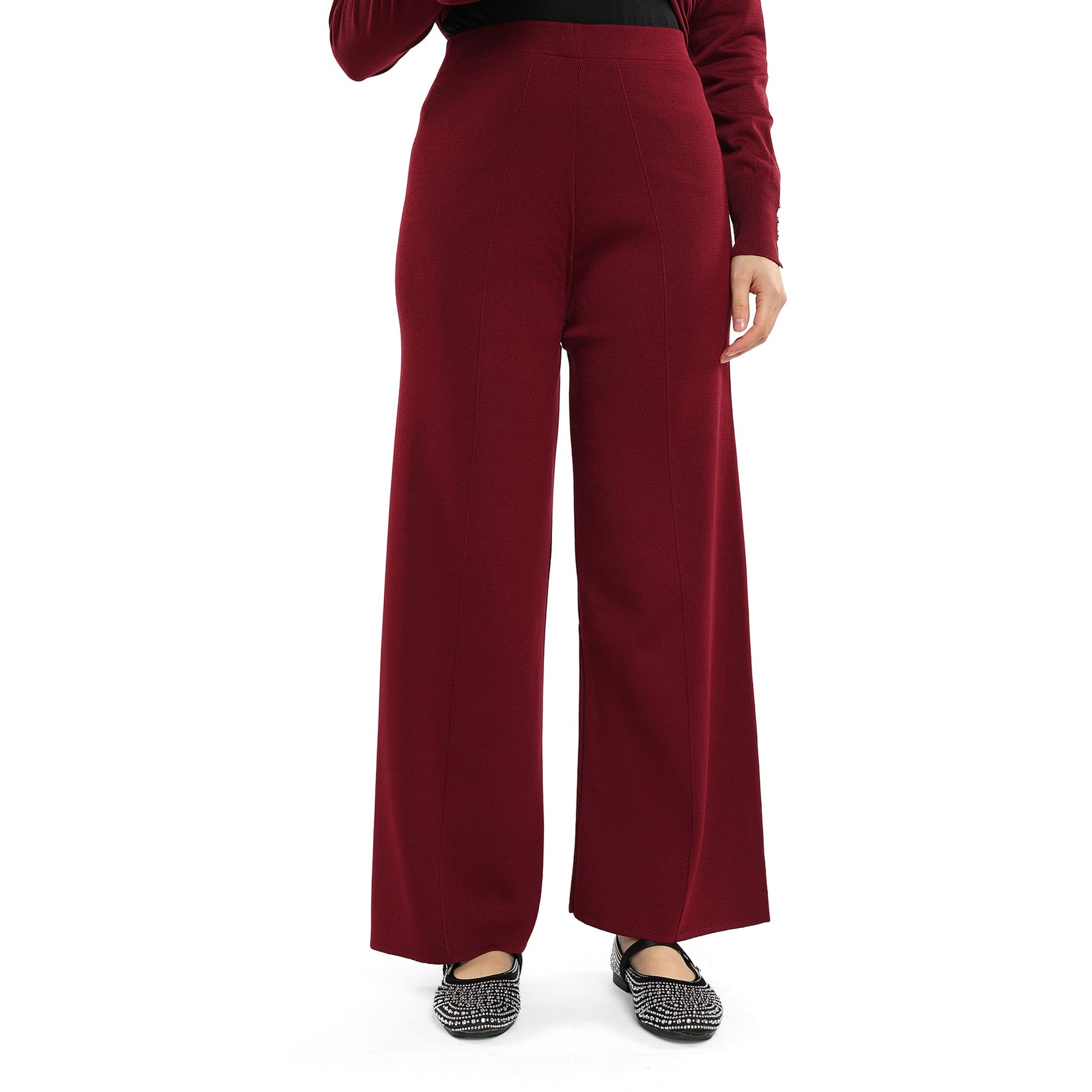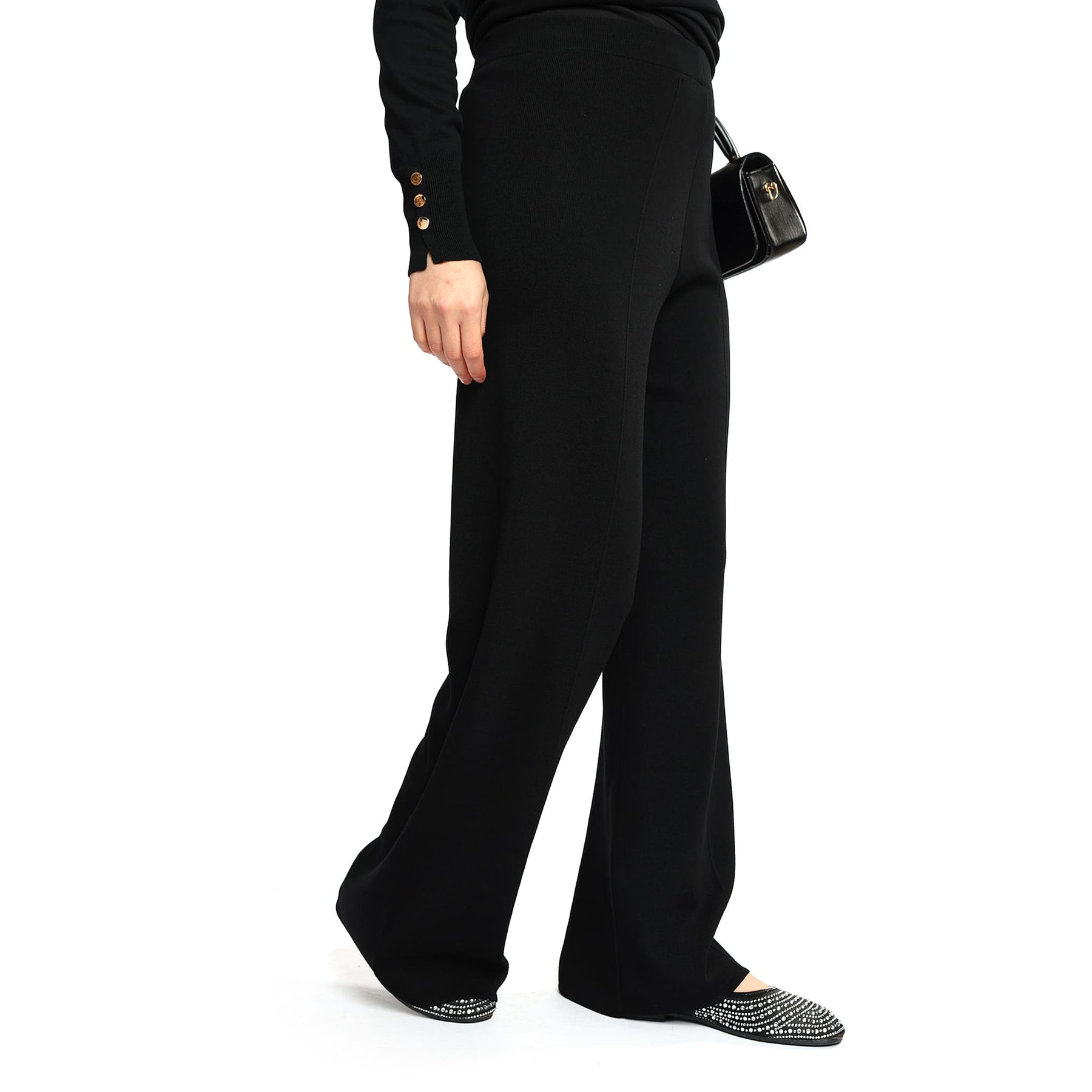 Designed for the colder months, these knit pants deliver warmth and comfort without compromising on a clean, polished look. The soft, stretchy knit gently follows the body, while the elasticated waistband offers an easy pull-on fit that stays comfortable all day. A straight profile with wide legs creates a fluid silhouette that pairs effortlessly with knit tops, shirts or relaxed sweaters-perfect for minimal, well-balanced outfits.