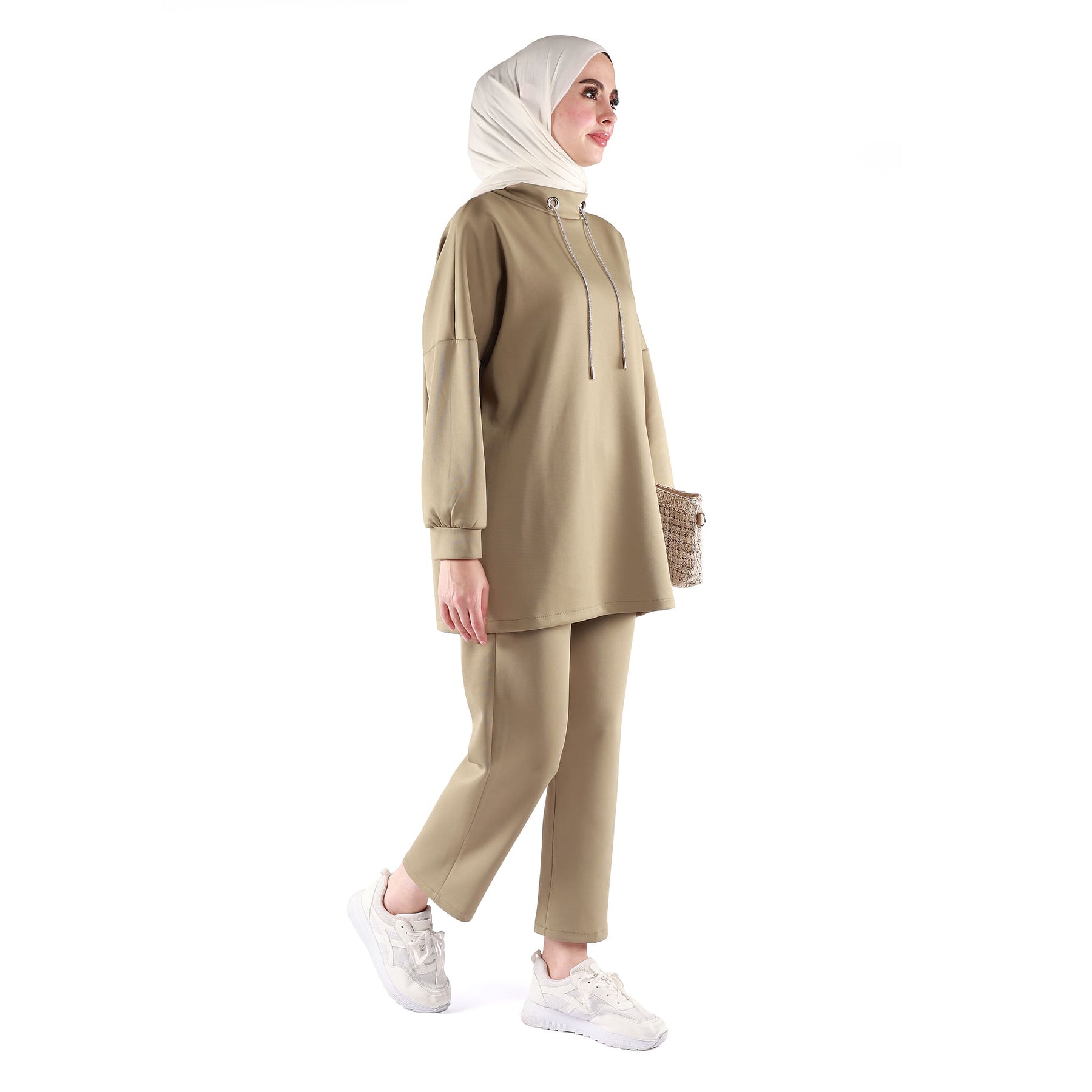 Model: Dropped shoulder stand collar pants set