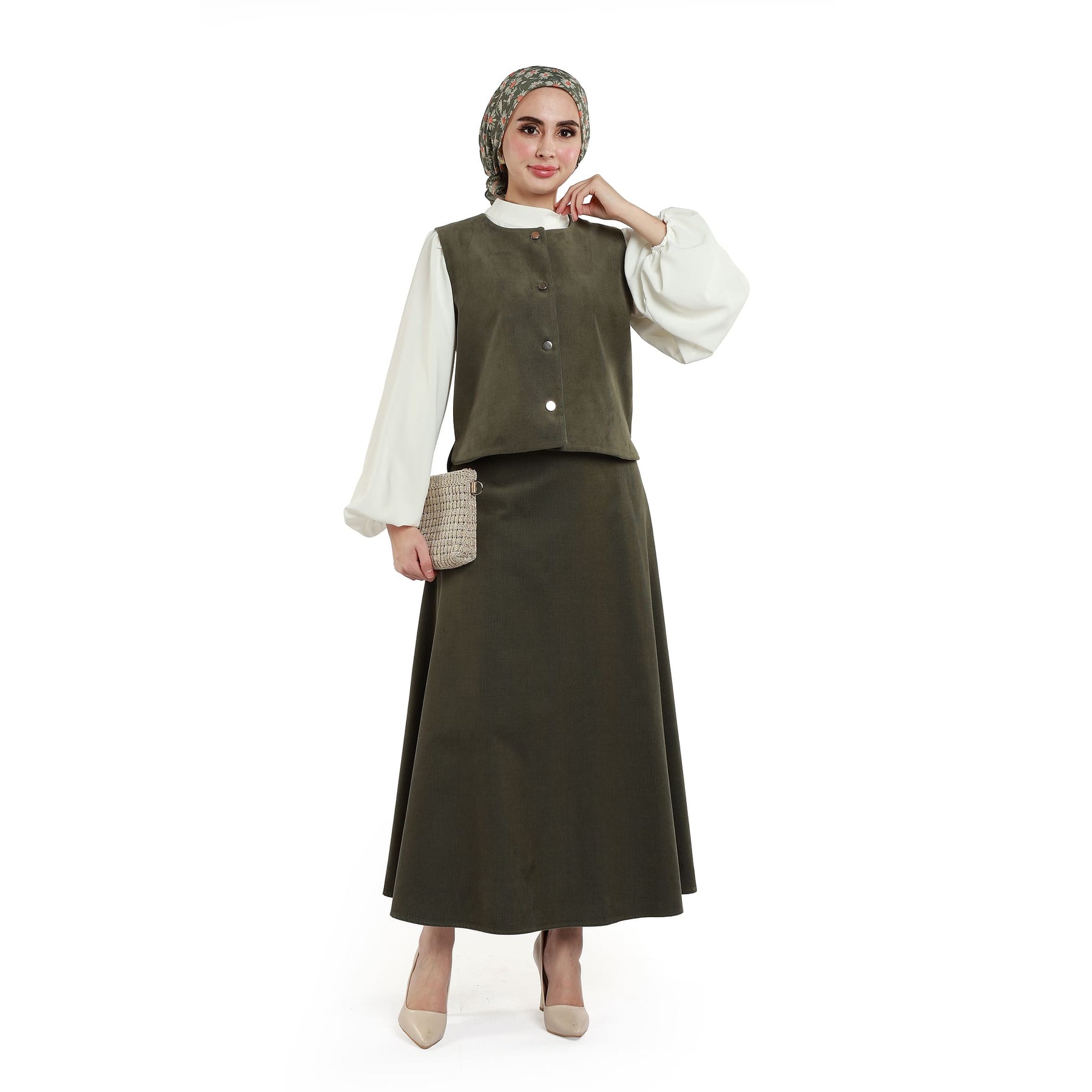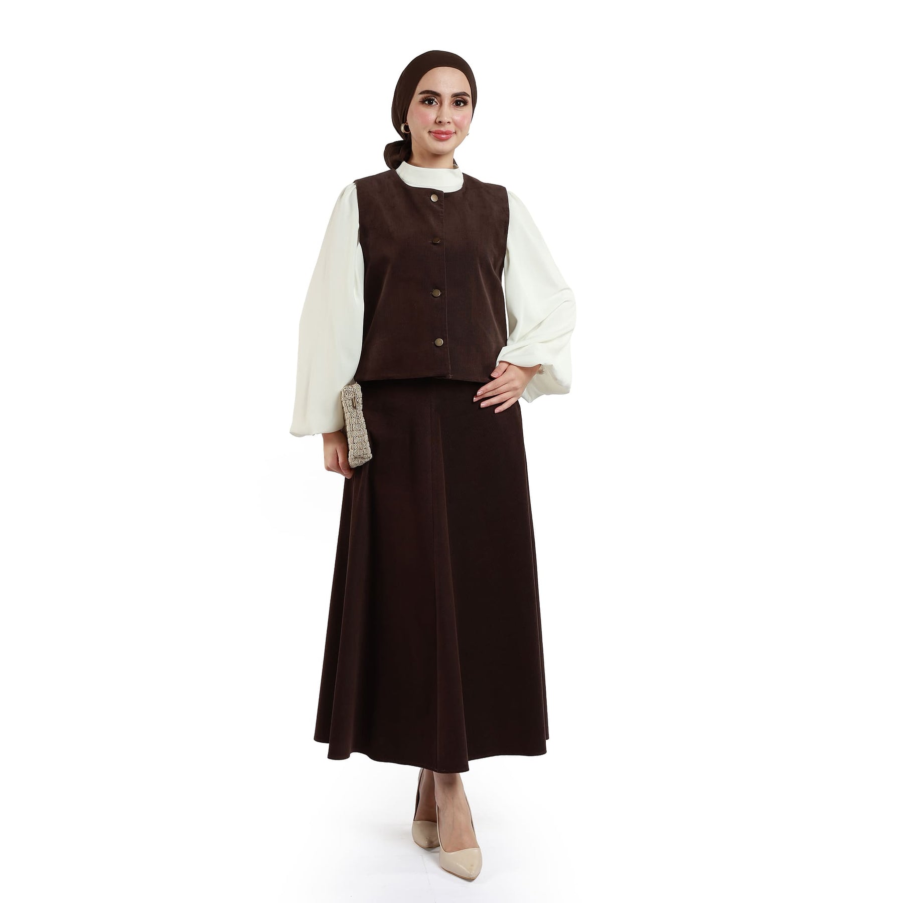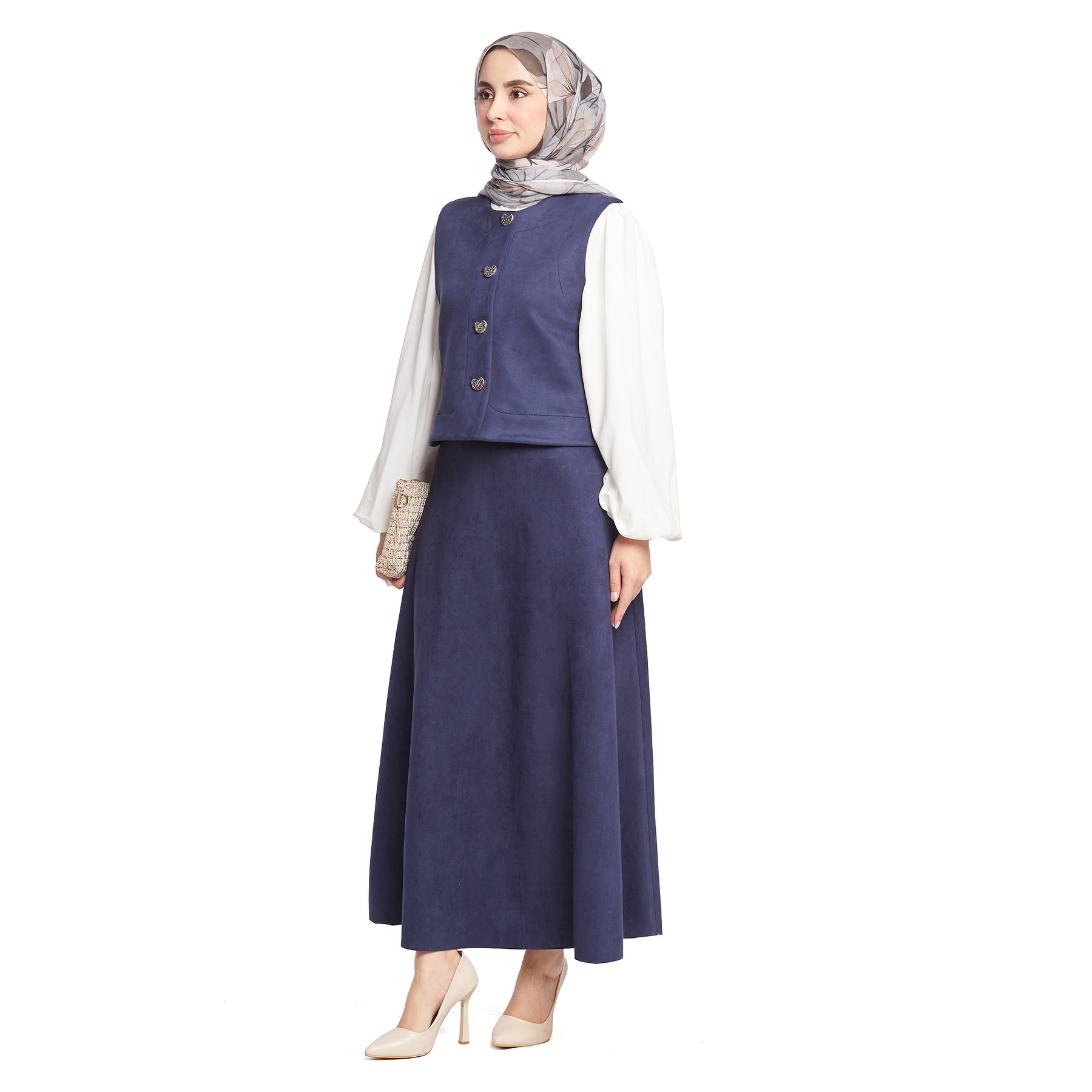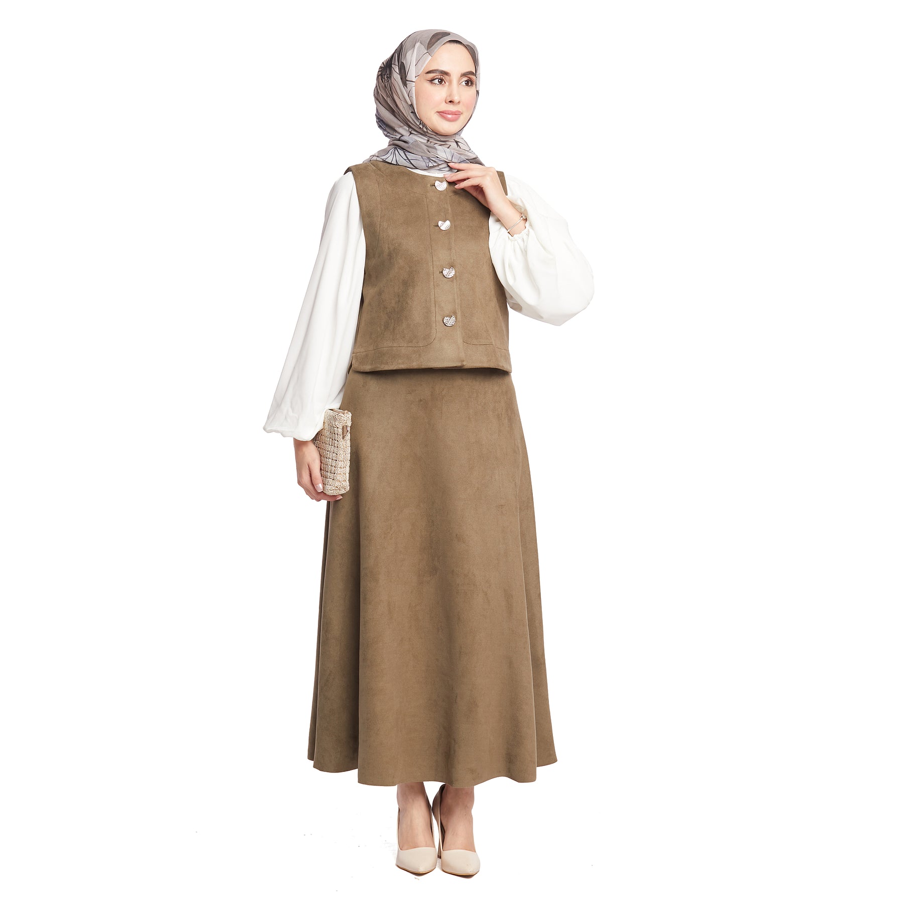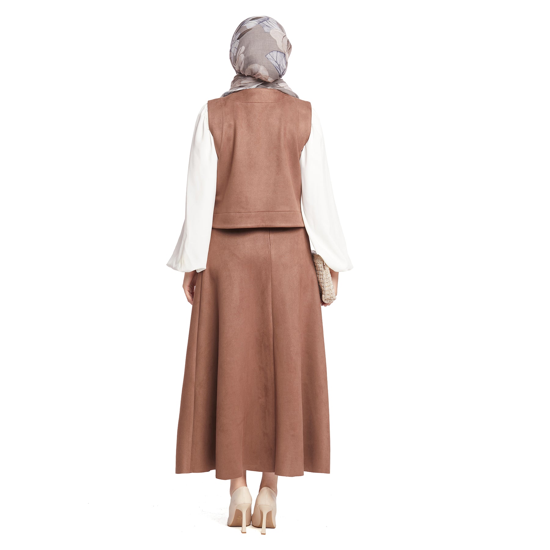 Model: Suede fabric skirted set