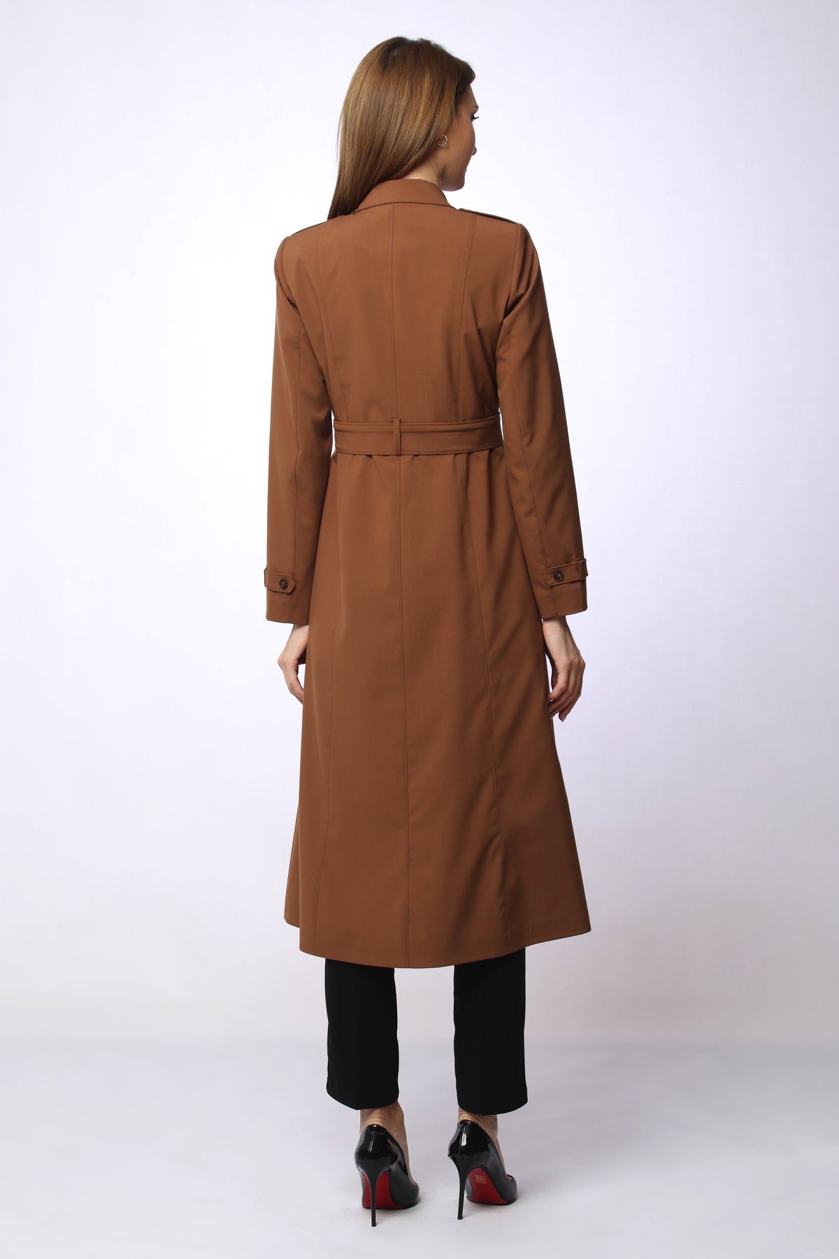 Crafted from a blend of 73% polyester, 23% viscose, and 4% elastane, this trench coat is available in a wide range of colors: navy, brick, latte brown, mink, black, blue, rosewood, burgundy, tan, khaki, beige, stone, lilac, plum, and gray. Perfect for daily chic, professional looks, and special occasions.