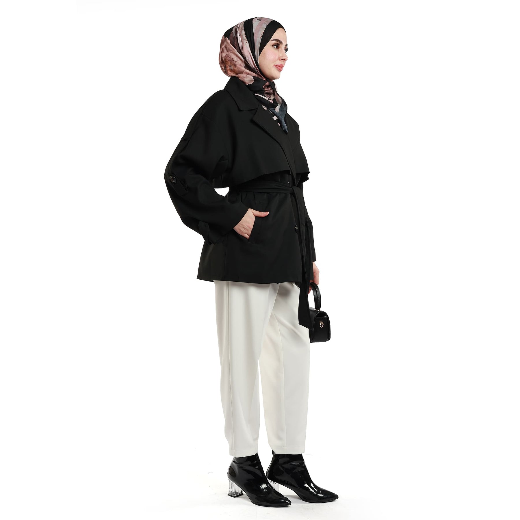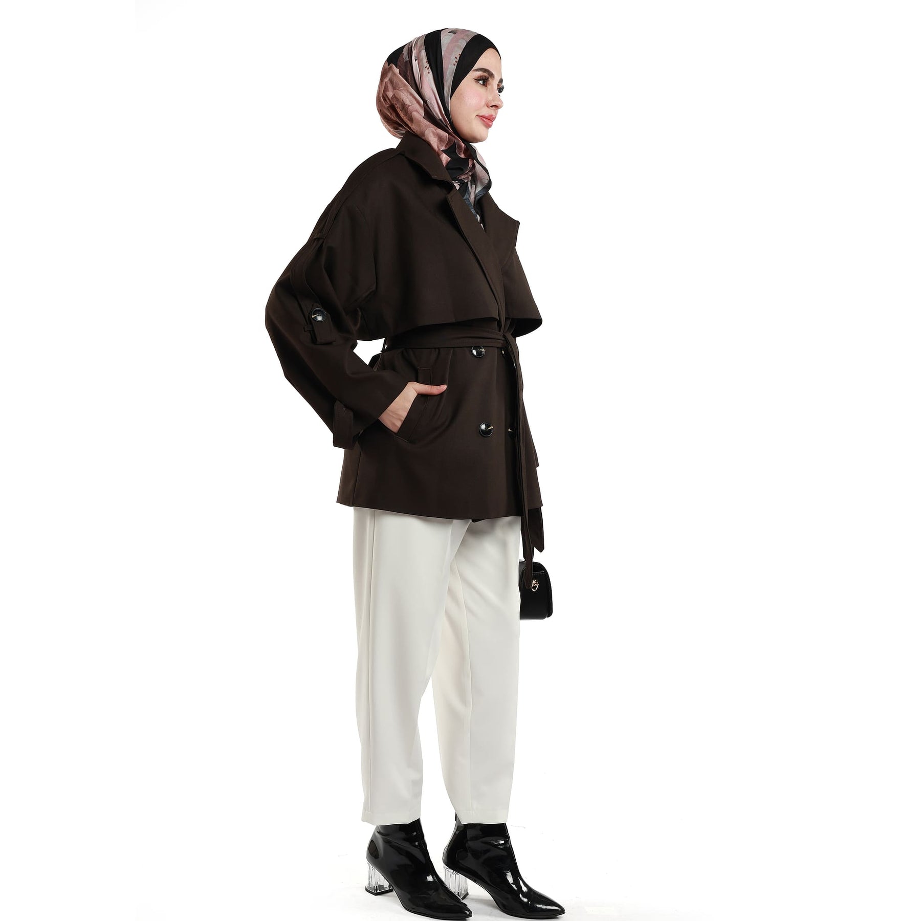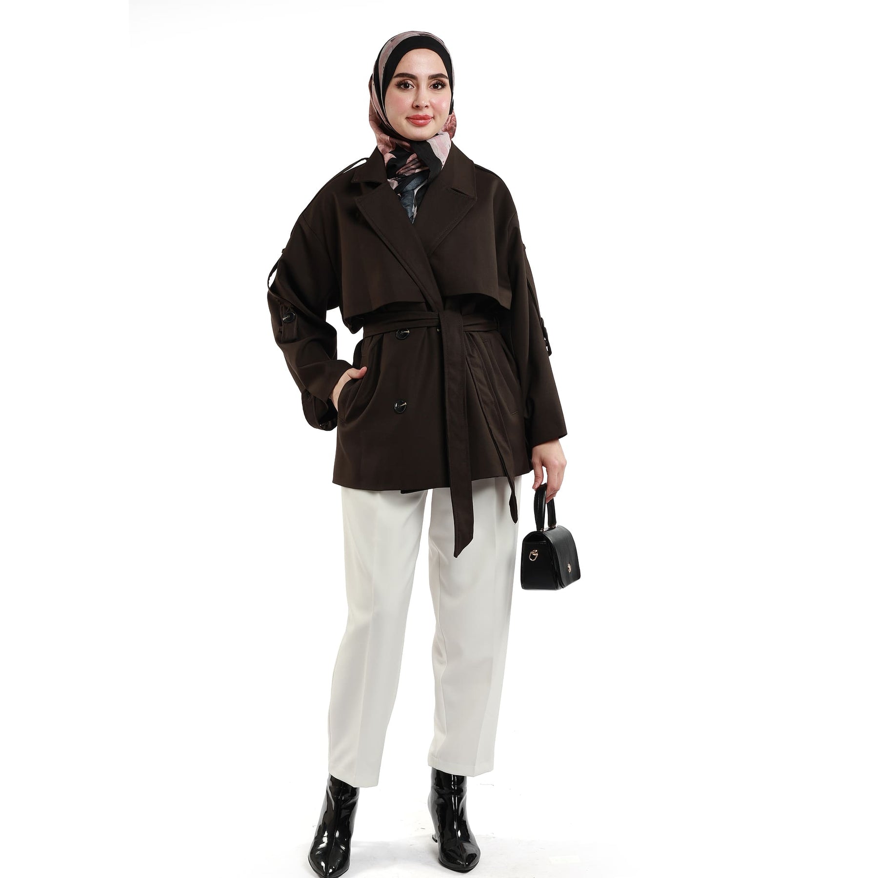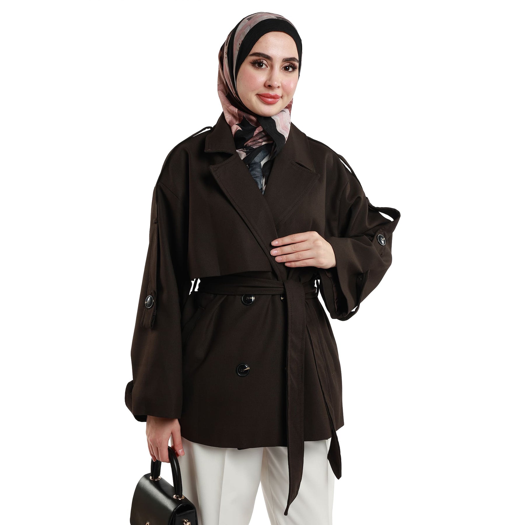 Two practical front pockets enhance the functional side of the coat, providing space to warm your hands or carry small essentials. With its versatile structure, this trench coat works perfectly over jeans, tailored trousers, dresses or skirts, making it an easy go-to piece for workdays and off-duty outfits alike. Available in brown, navy and black, it pairs seamlessly with both casual and more polished combinations. Styled with sneakers for a relaxed vibe or with ankle boots and a structured bag for a sharper look, the Dropped Sleeve Double-Breasted Trench Coat becomes a key wardrobe staple for those who appreciate classic elegance with a modern twist.