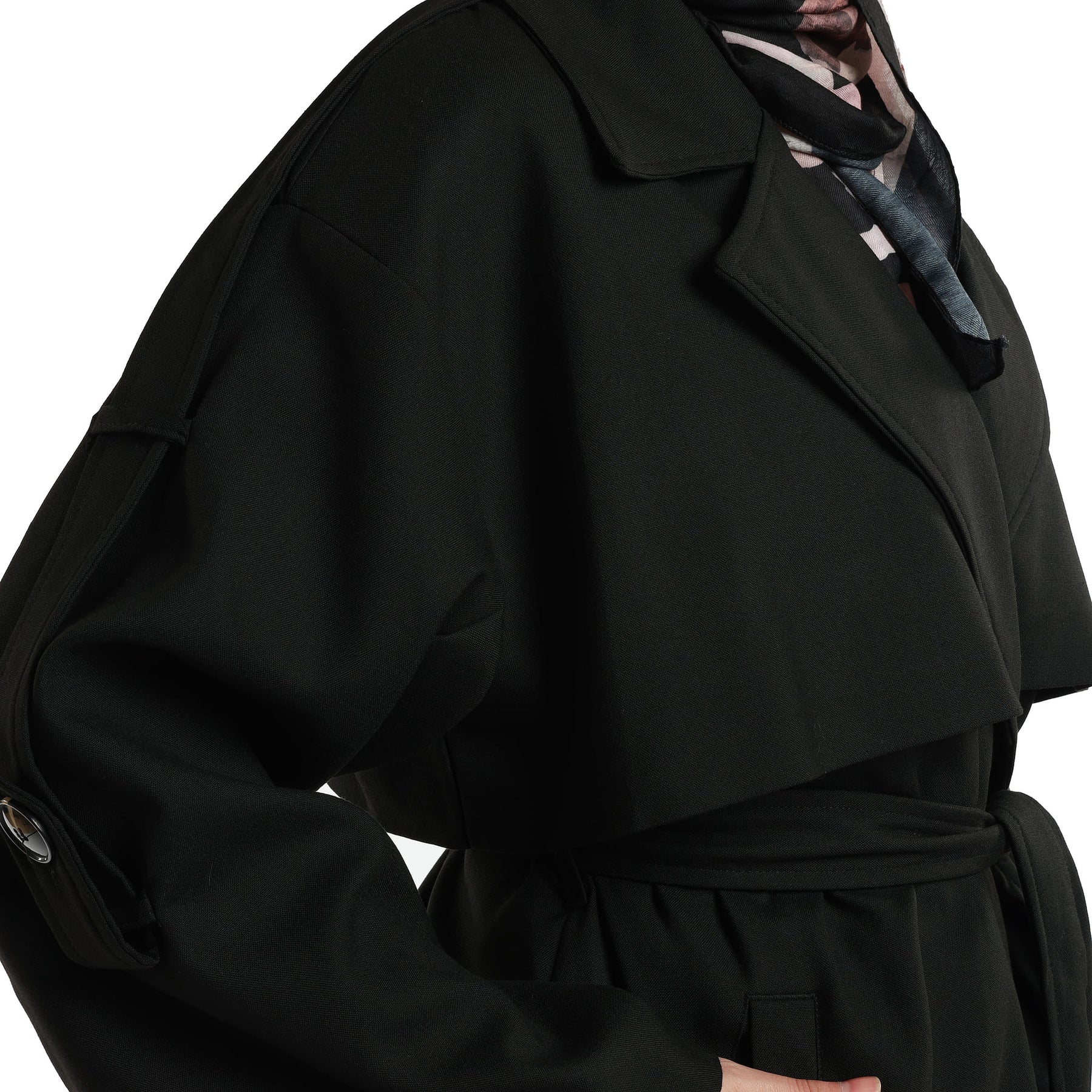 The Dropped Sleeve Double-Breasted Trench Coat combines classic tailoring with a modern relaxed silhouette, offering a sophisticated outerwear option for everyday city life. Its double-breasted front can be buttoned either to the right or left, allowing you to adapt the look and fit to your personal style. The dropped shoulder design softens the overall shape, giving the coat a contemporary, slightly oversized feel, while the extended epaulette detail that runs over the shoulder adds a timeless trench-inspired touch. A matching belt at the waist lets you cinch the coat in for a more defined, feminine silhouette or leave it open for an effortless, laid-back look.