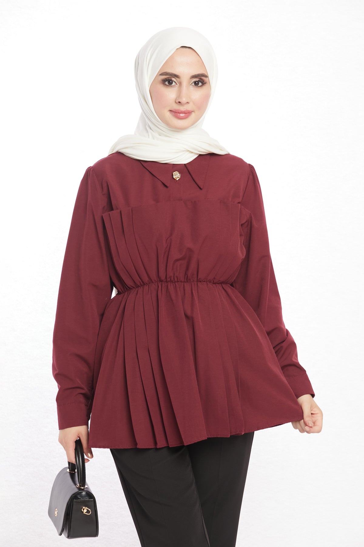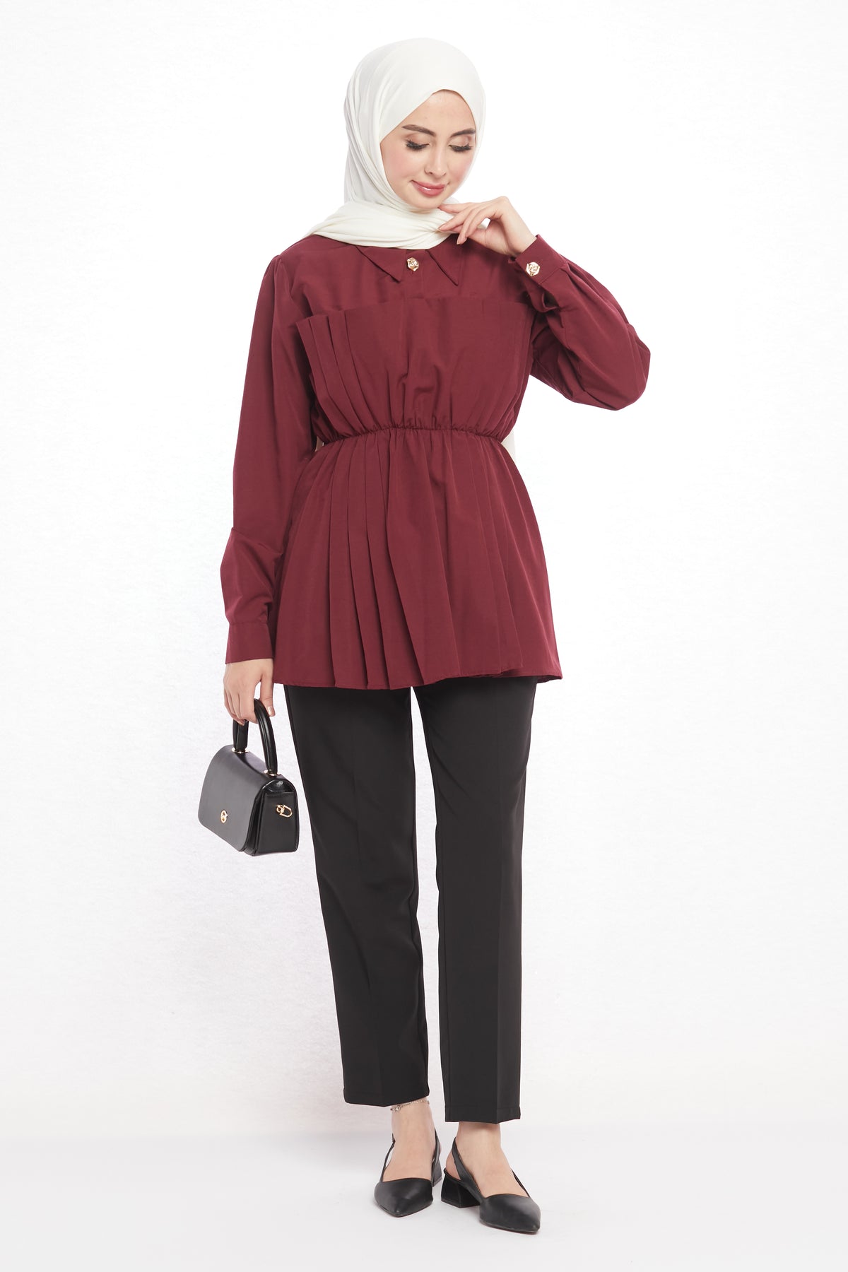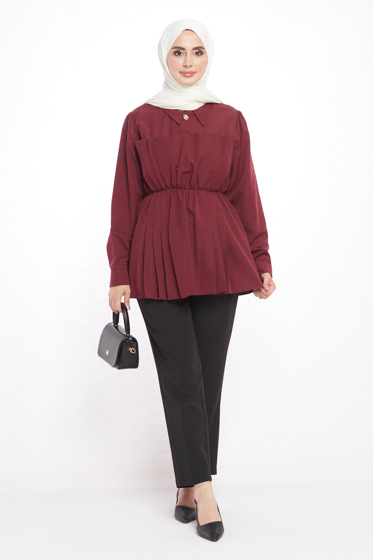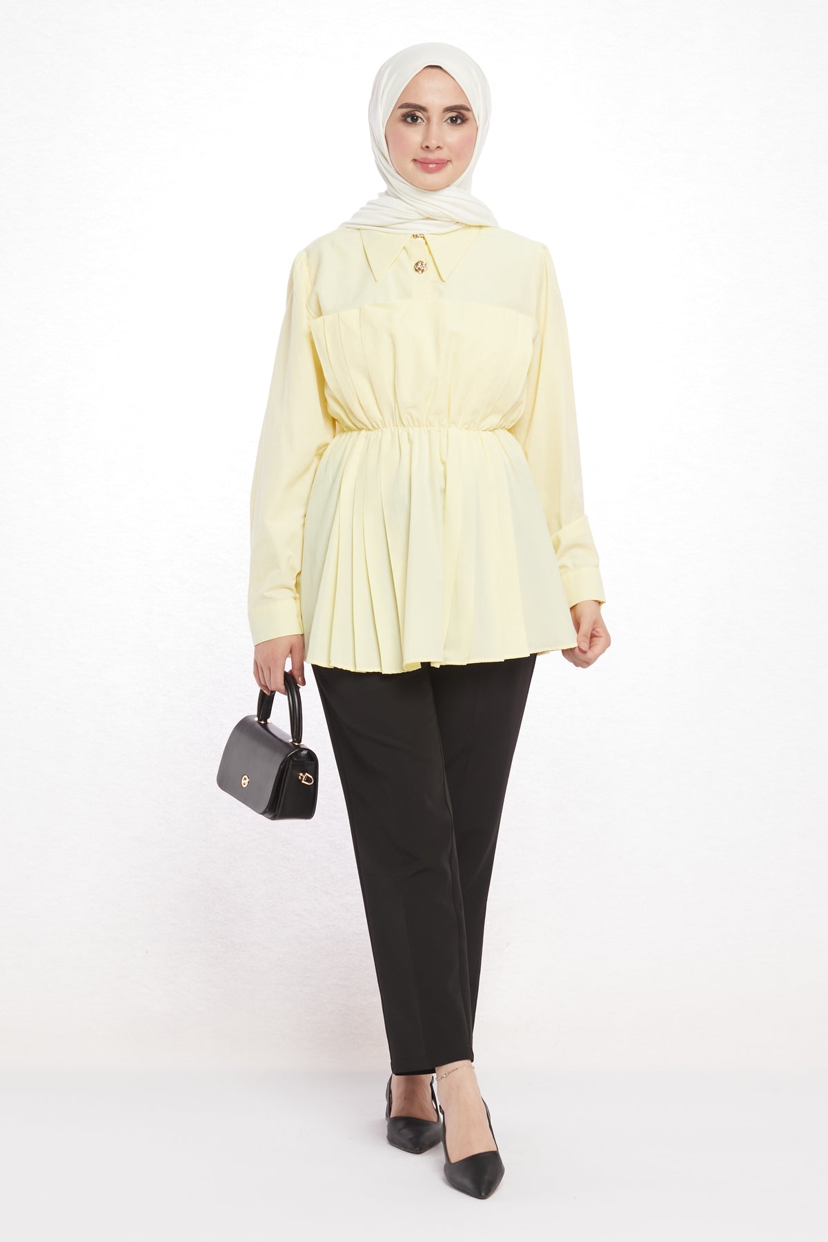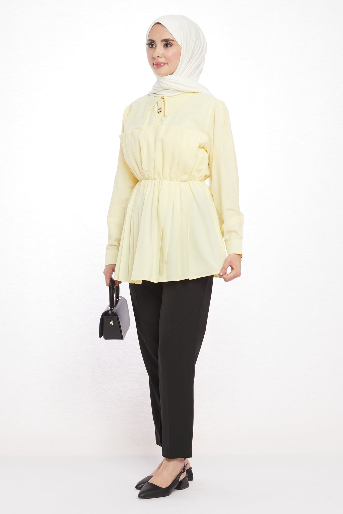 The ruched polo collar summer shirt stands out with its modern design and lightweight fabric, ensuring comfort during warm days. Featuring a half-button closure with two elegant gold buttons at the top, it adds a touch of sophistication. The ruched detailing enhances its dynamic and stylish look.