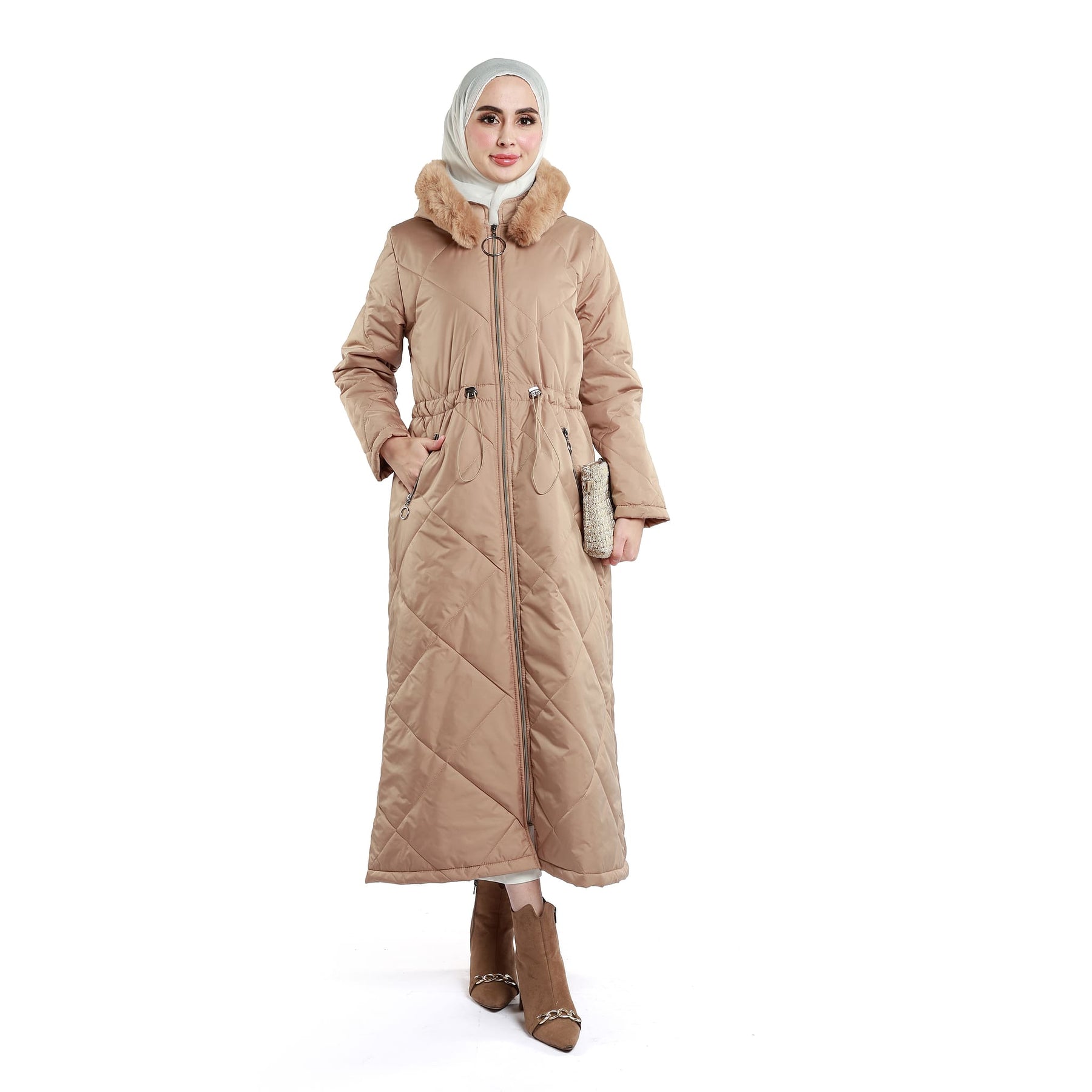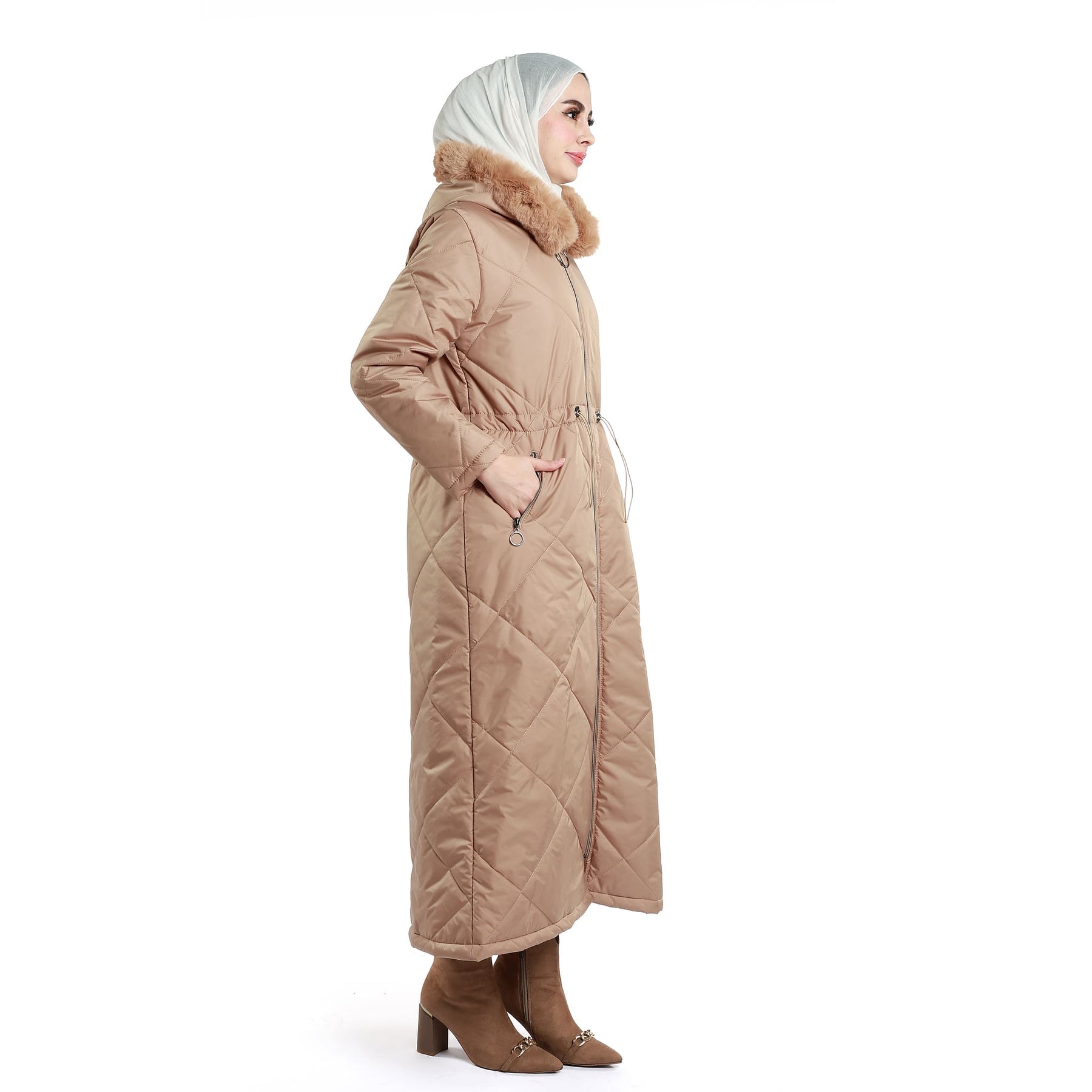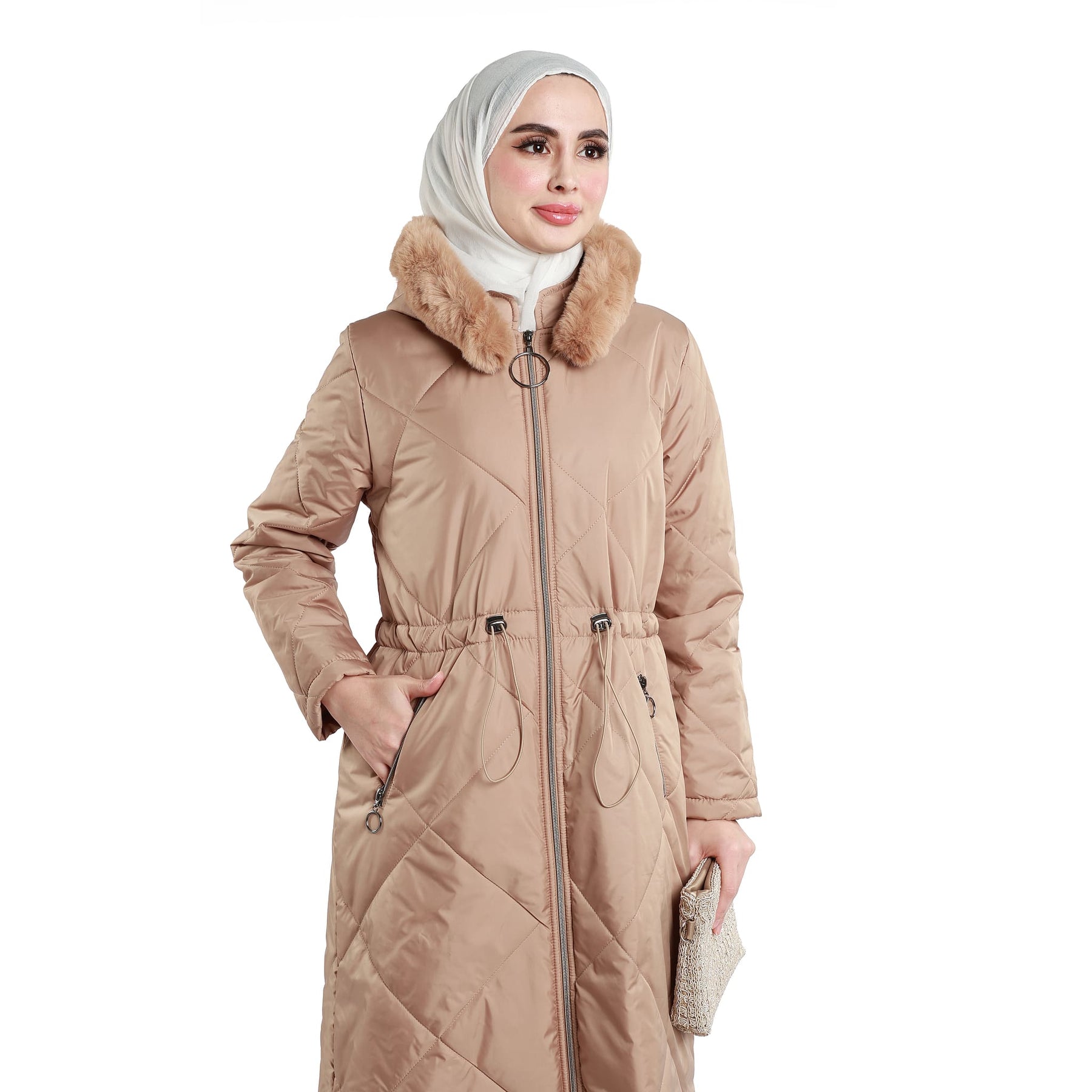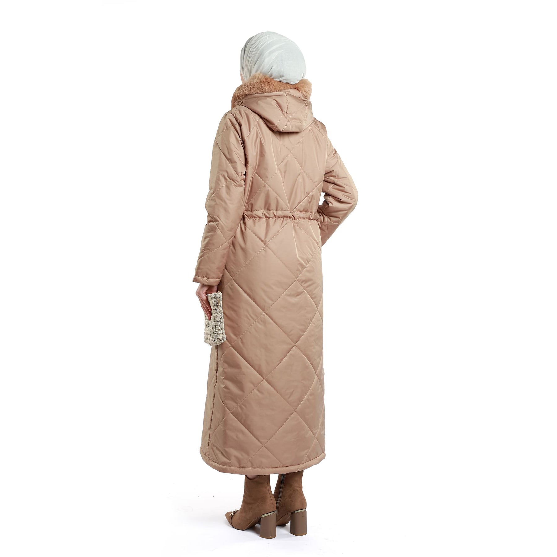 This quilted long coat with a soft faux-fur collar keeps you warm while adding a refined touch to your winter looks. Available in black, camel, beige, grey, stone, off-white and tan, it is easy to style for everyday wear. The elastic drawstring waist creates a more defined and feminine silhouette.