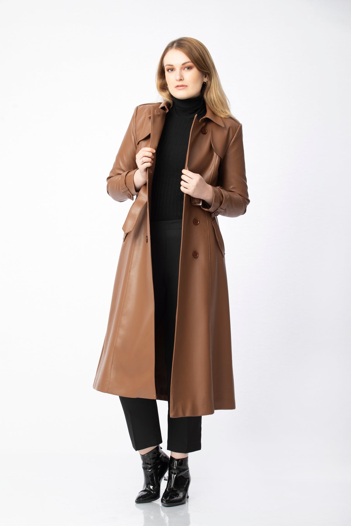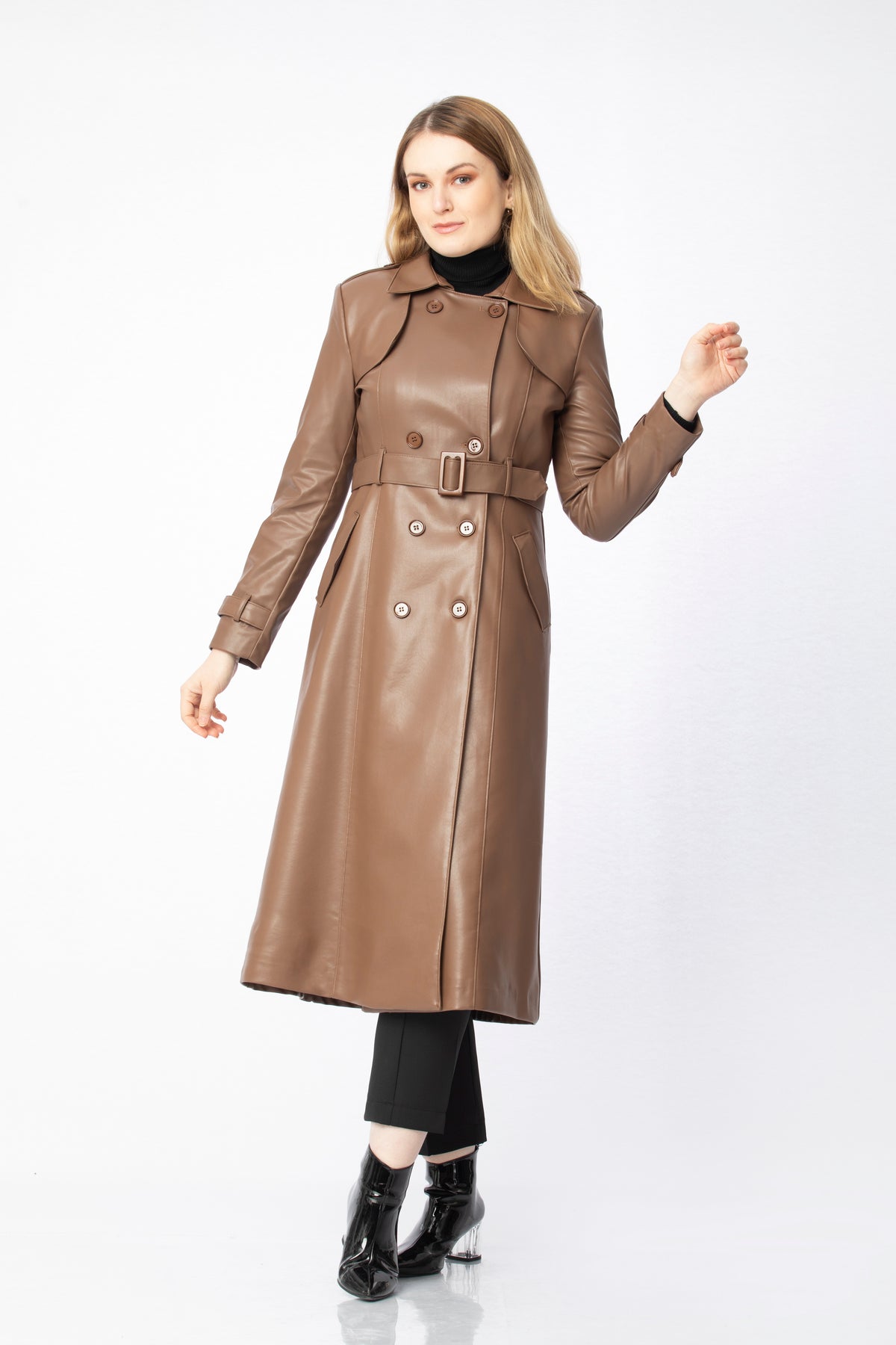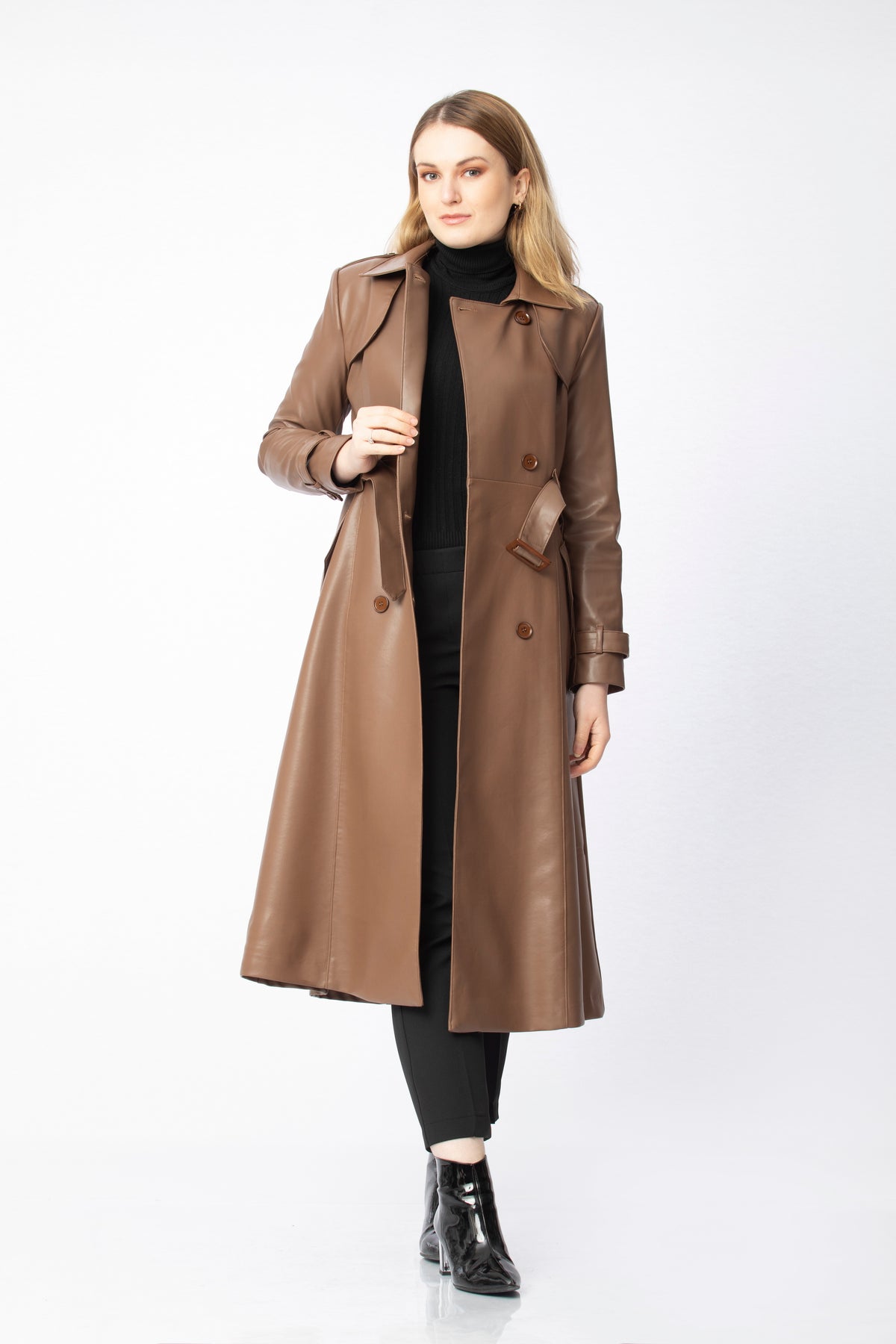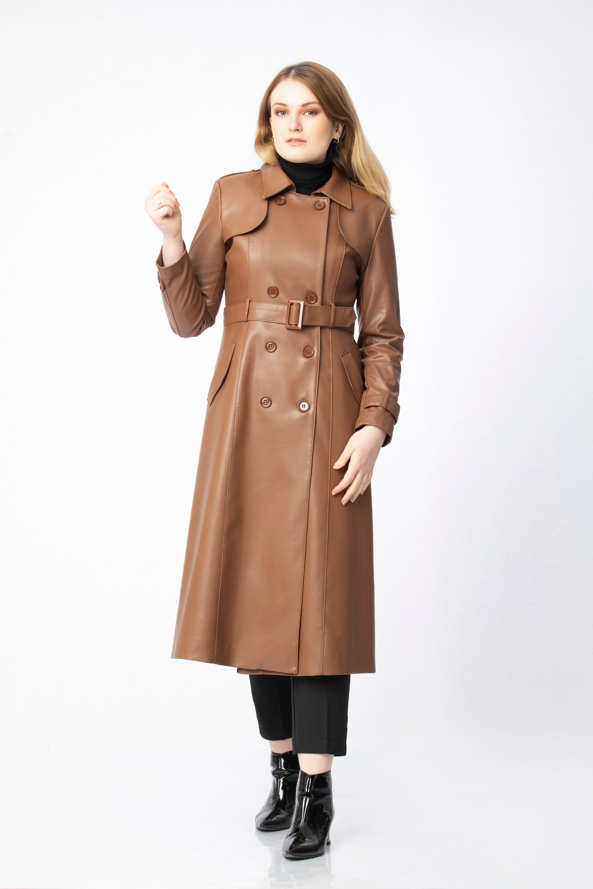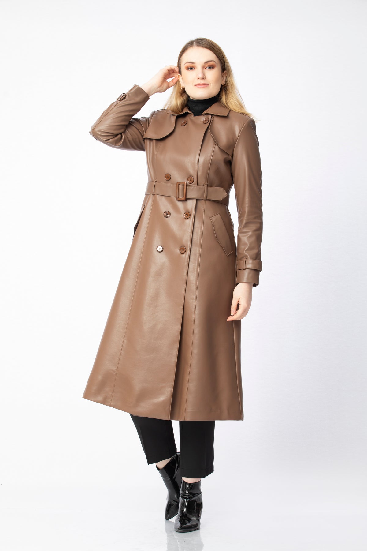 Available in black, nude, beige, brown and brick, this coat easily complements many pieces in your wardrobe. It pairs beautifully with knitwear, shirts or simple tops, and works just as well over tailored trousers, dresses or skirts. Styled with boots, ankle boots or heels, it can be adapted from everyday elegance to more dressed-up occasions with very little effort. The relaxed yet structured fit ensures comfort throughout the day, while its timeless design makes it a long-lasting piece you’ll reach for season after season whenever you want a sophisticated finishing touch.