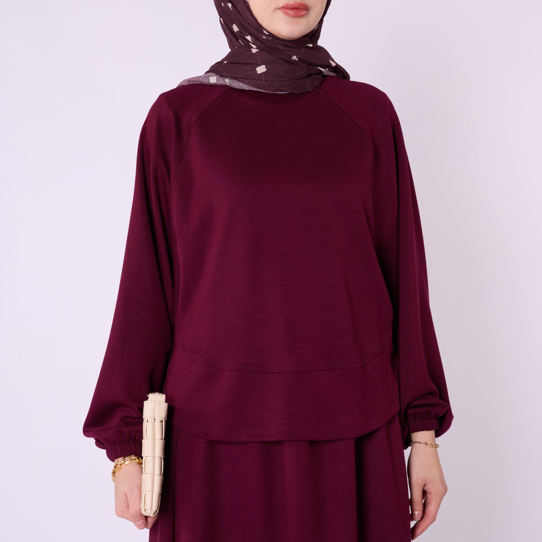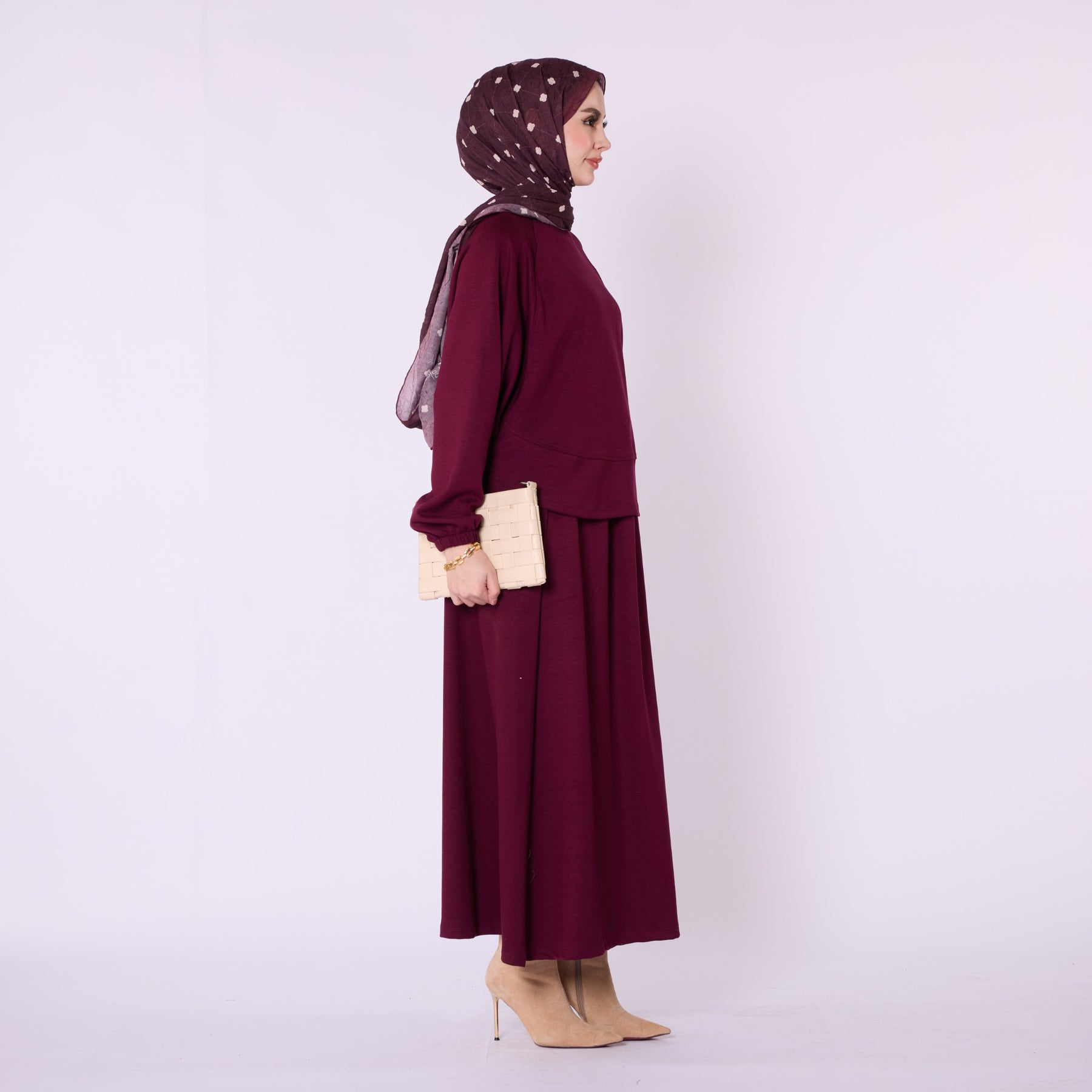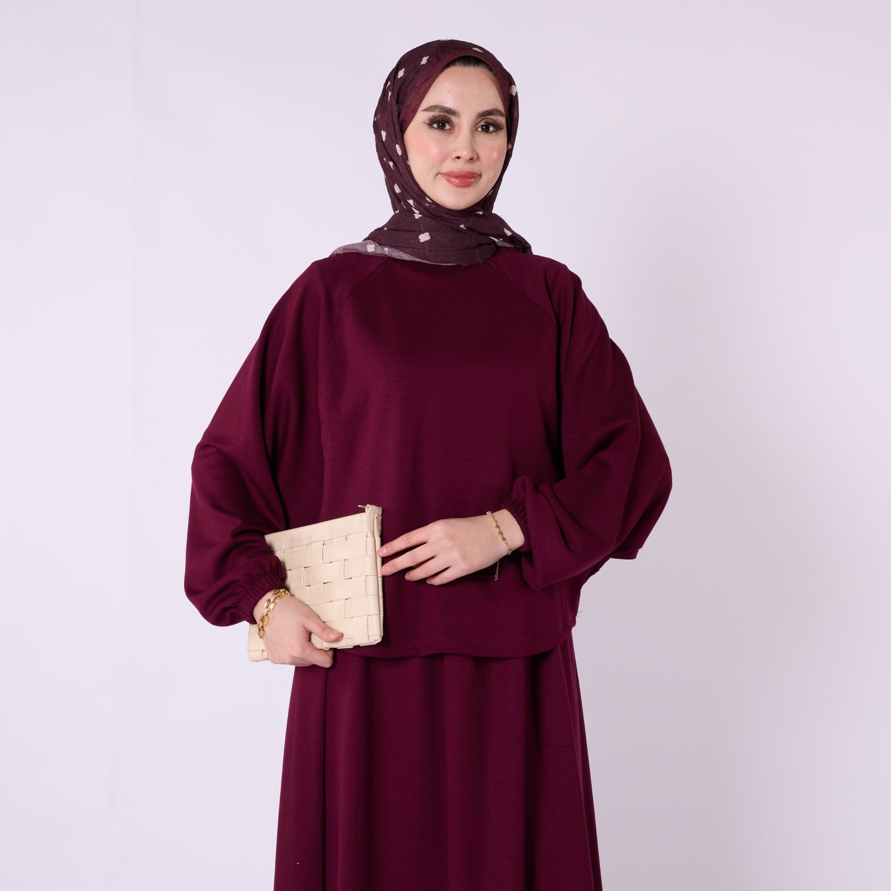 Designed for comfort and effortless style, the Batwing Sleeve Elastic Waist Skirt Cotton Two-Piece Set offers a modern silhouette suitable for everyday wear. Made from 100% breathable cotton, it provides long-lasting comfort throughout the day. The draped batwing-sleeve top creates a relaxed and fluid look, while the elastic-waist skirt ensures ease of movement and a flattering fit. Available in burgundy, navy and black, this versatile set pairs well with minimalist accessories for a chic appearance or can be styled casually for daily outings. Its soft texture and practical structure make it ideal for city life, workdays or comfortable weekend looks.