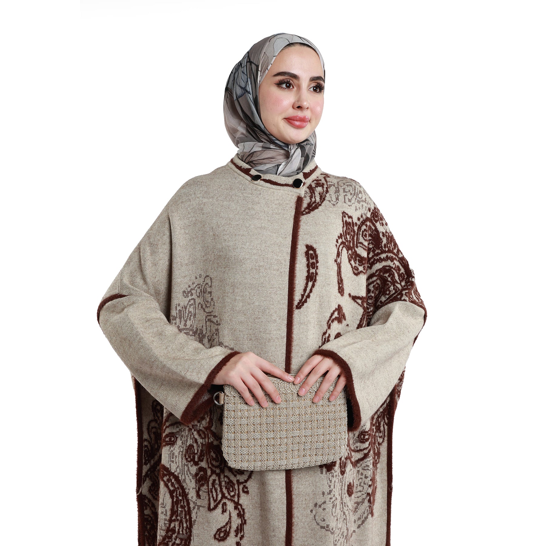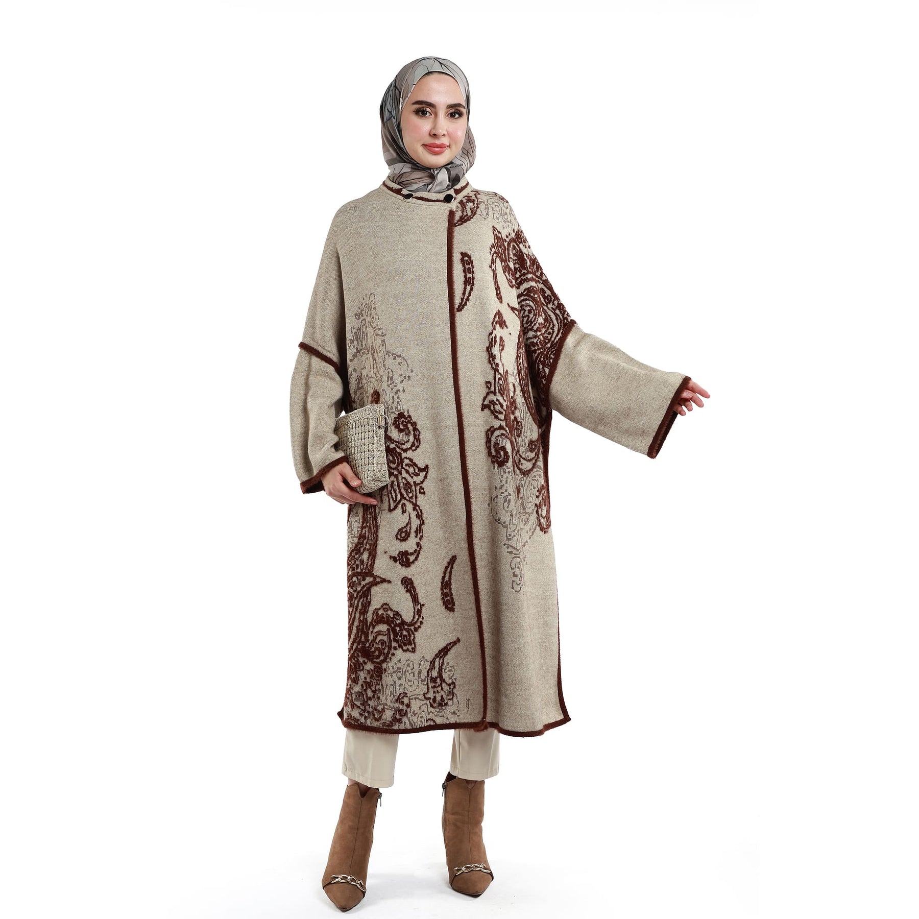 Blending warmth with ease, this patterned long cardigan features a wool-like, fluffy texture that feels soft against the skin while providing cosy insulation. Its draped, relaxed cut falls smoothly without clinging, creating an effortless silhouette that layers beautifully over dresses, knits or trousers. Two glossy black buttons with gold rims at the upper front add a refined touch, elevating the minimalist look with subtle shine. Lightweight stretch improves day-long comfort and movement, making it a reliable piece for transitional weather and cooler days alike. Offered in black and stone, it integrates seamlessly into neutral wardrobes—finish with ankle boots and pared-back jewellery for a polished, easygoing outfit.