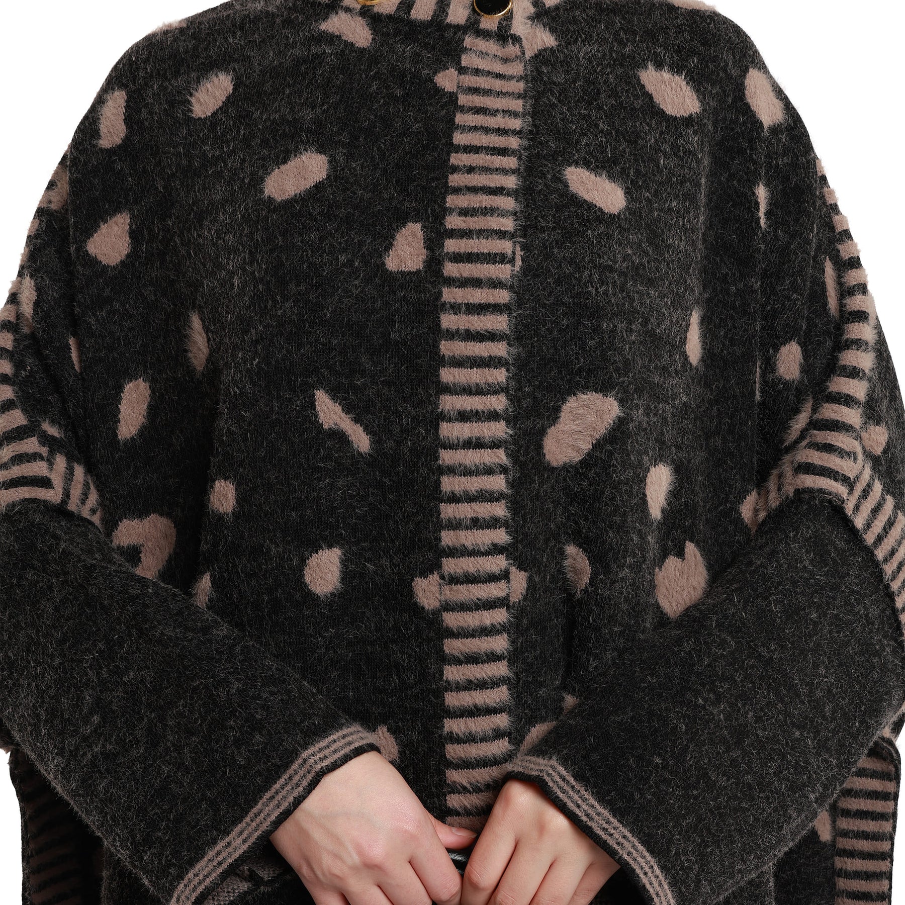 Model: Oversized long knit cardigan with mosaic pattern