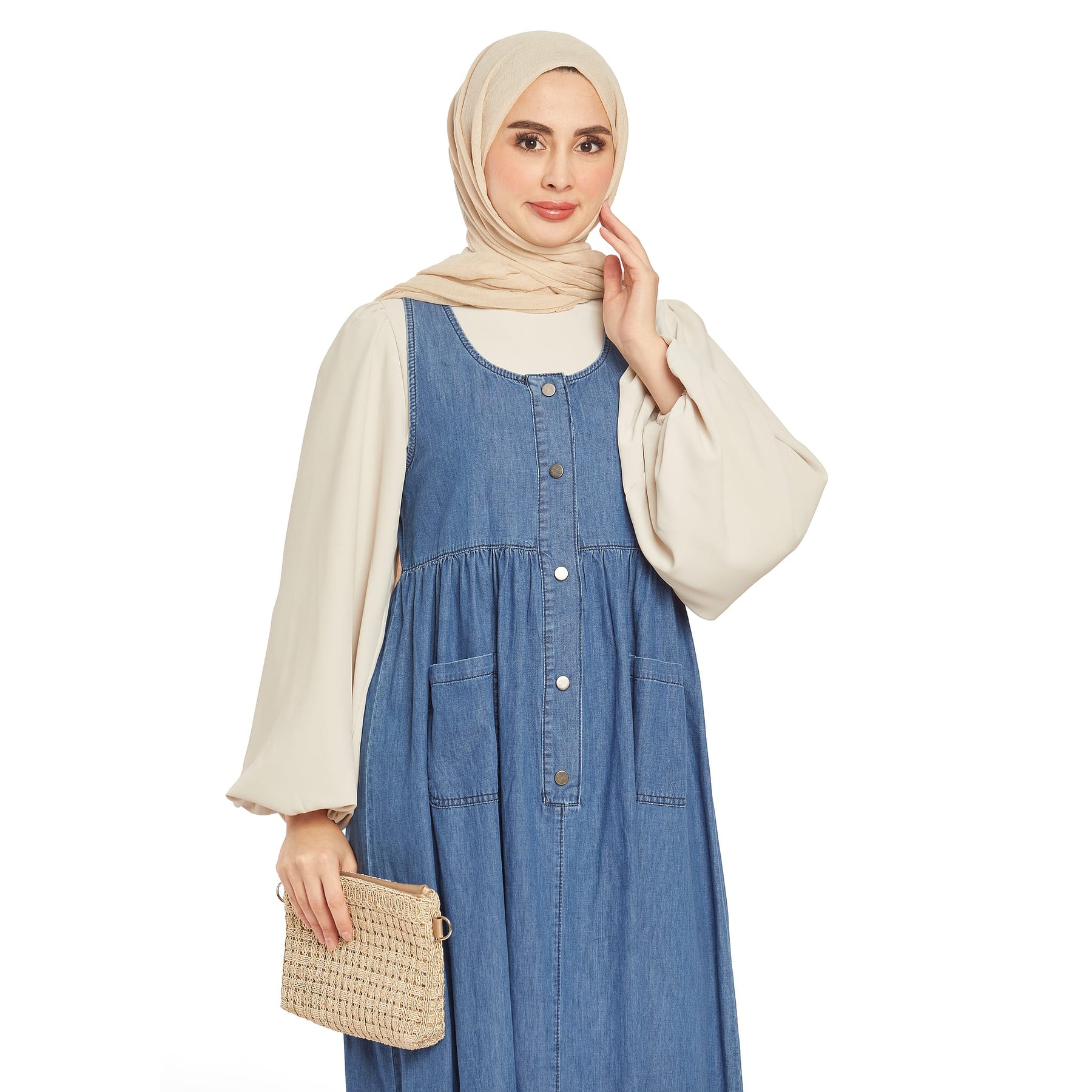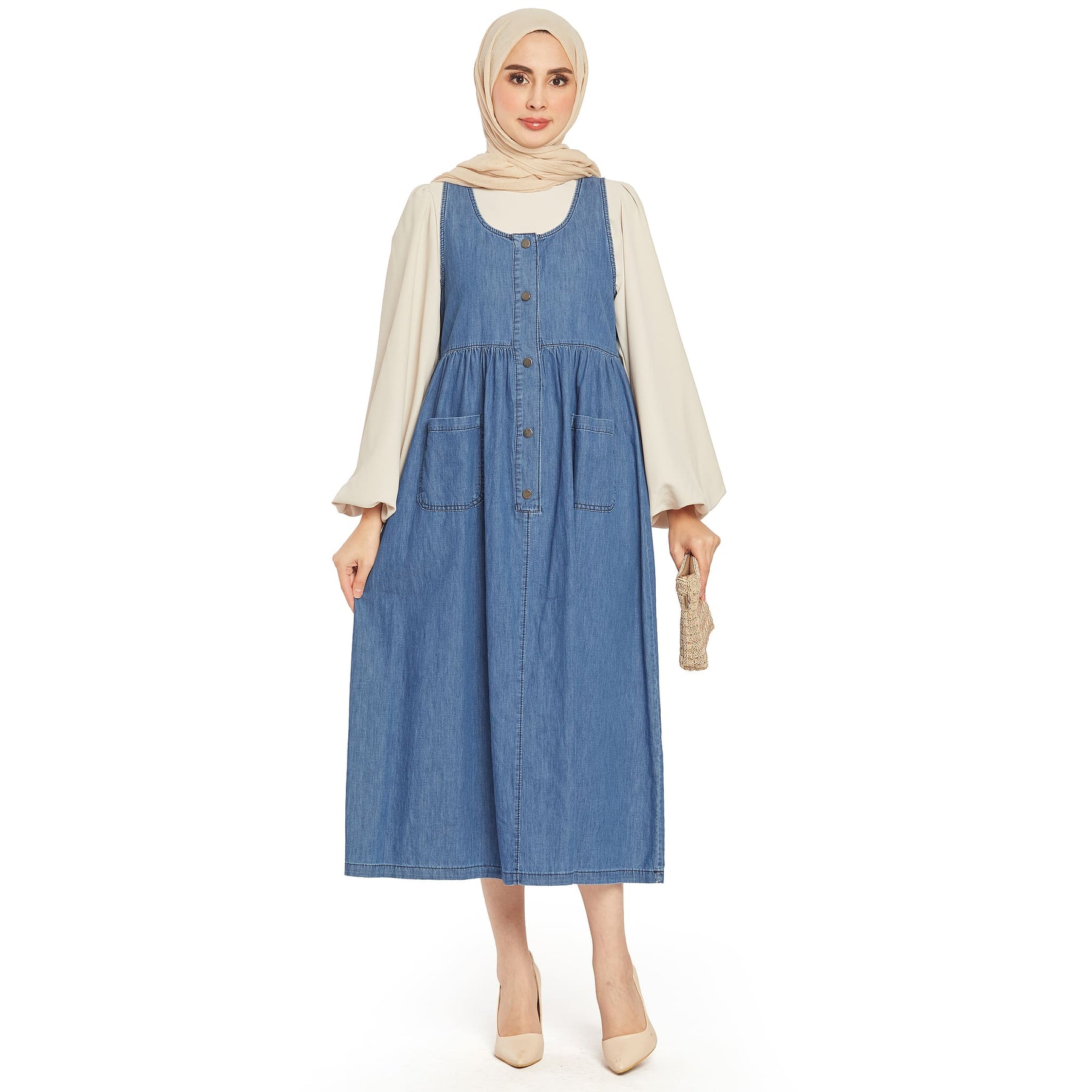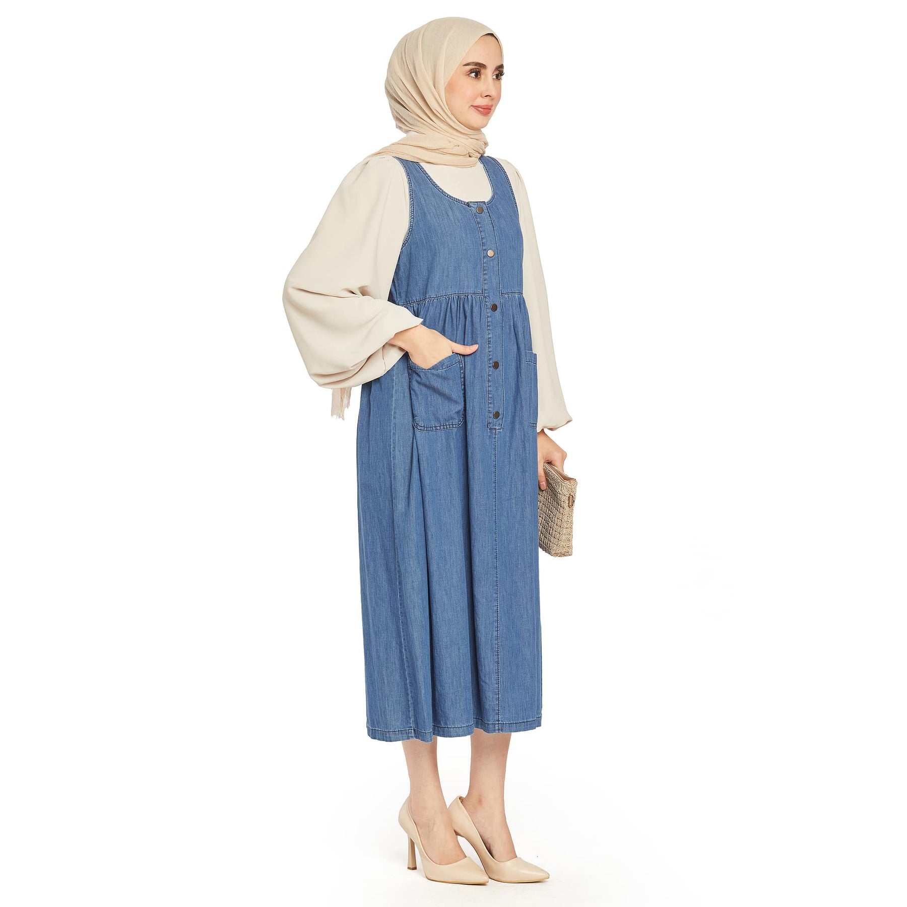• Model: Pleated pocket detailed denim dress
