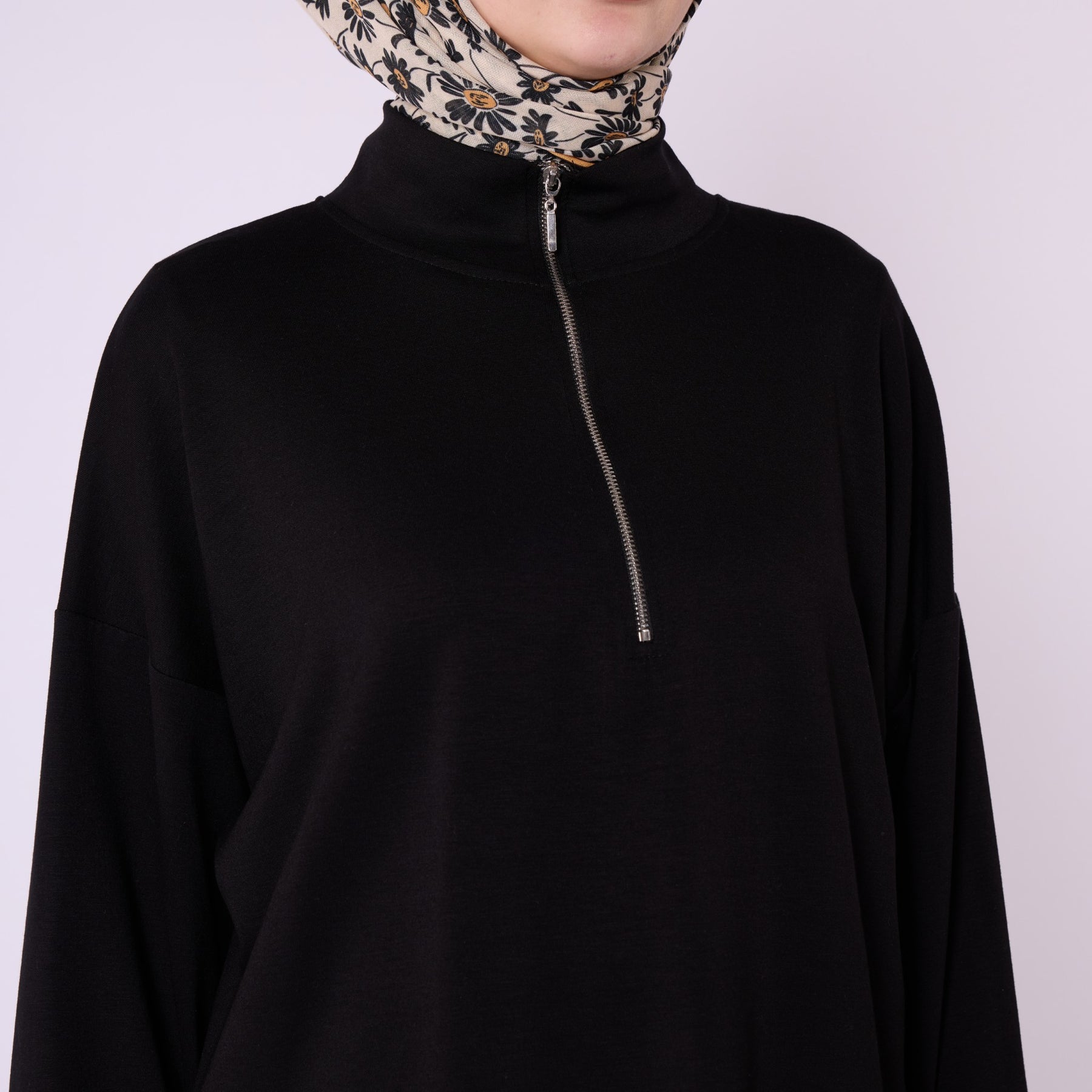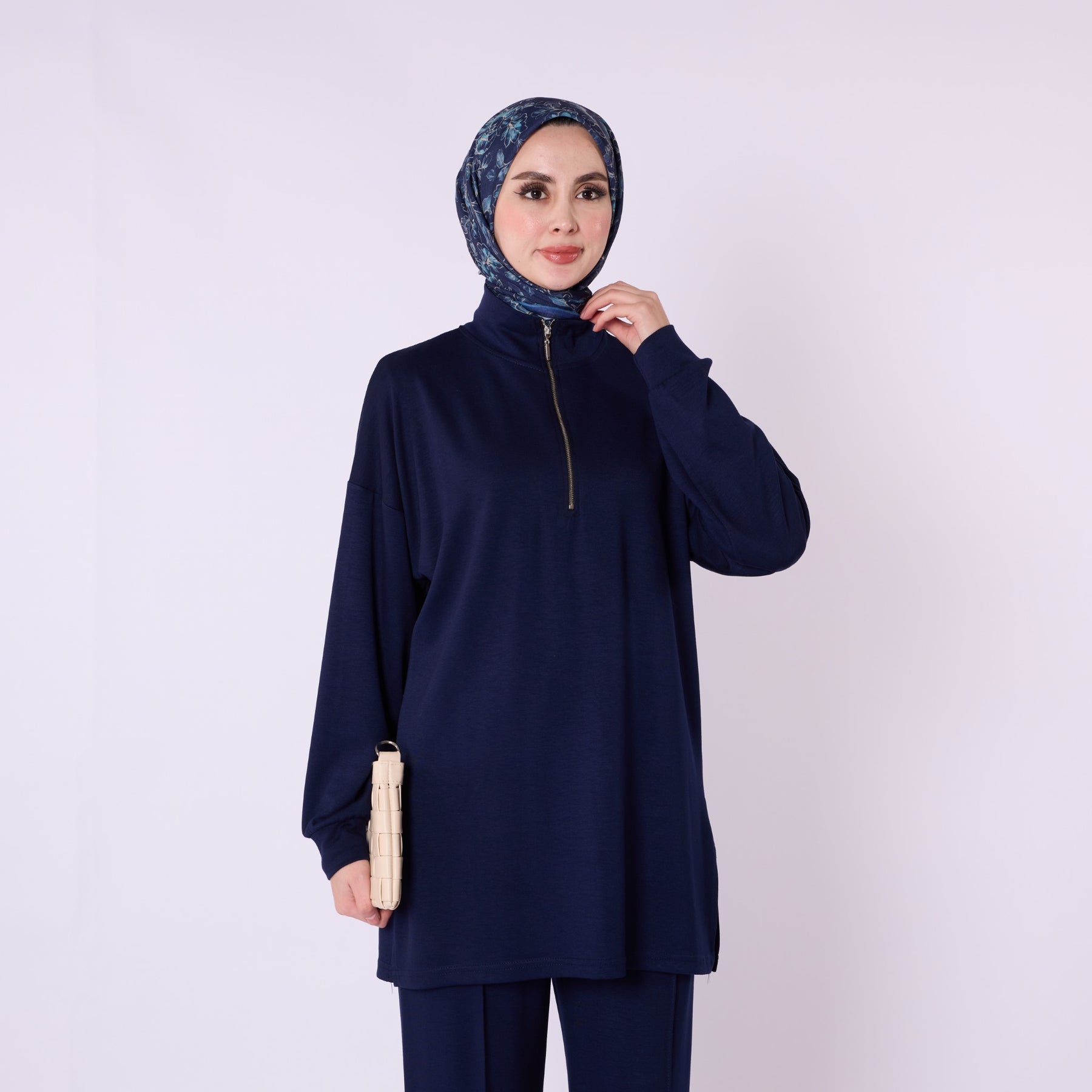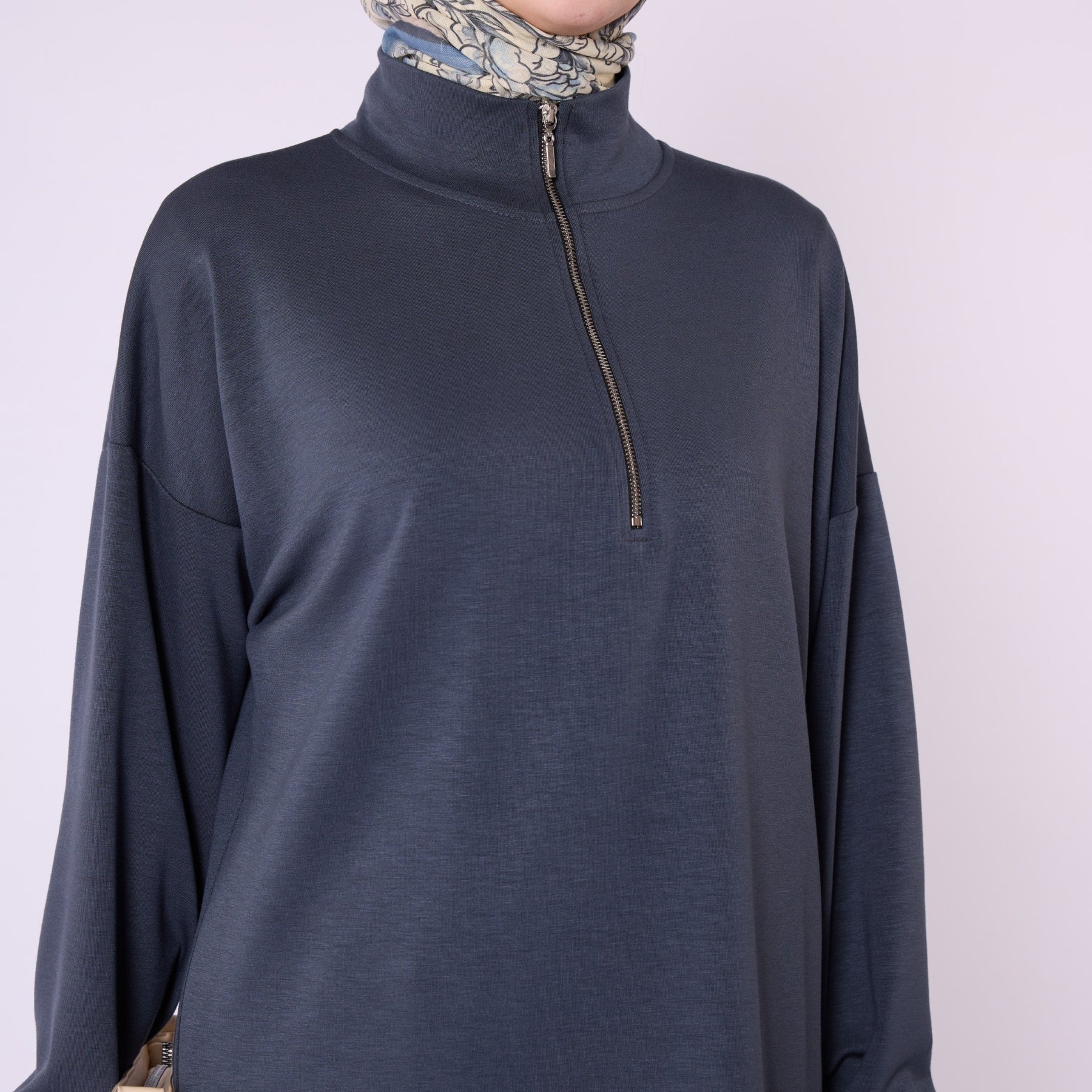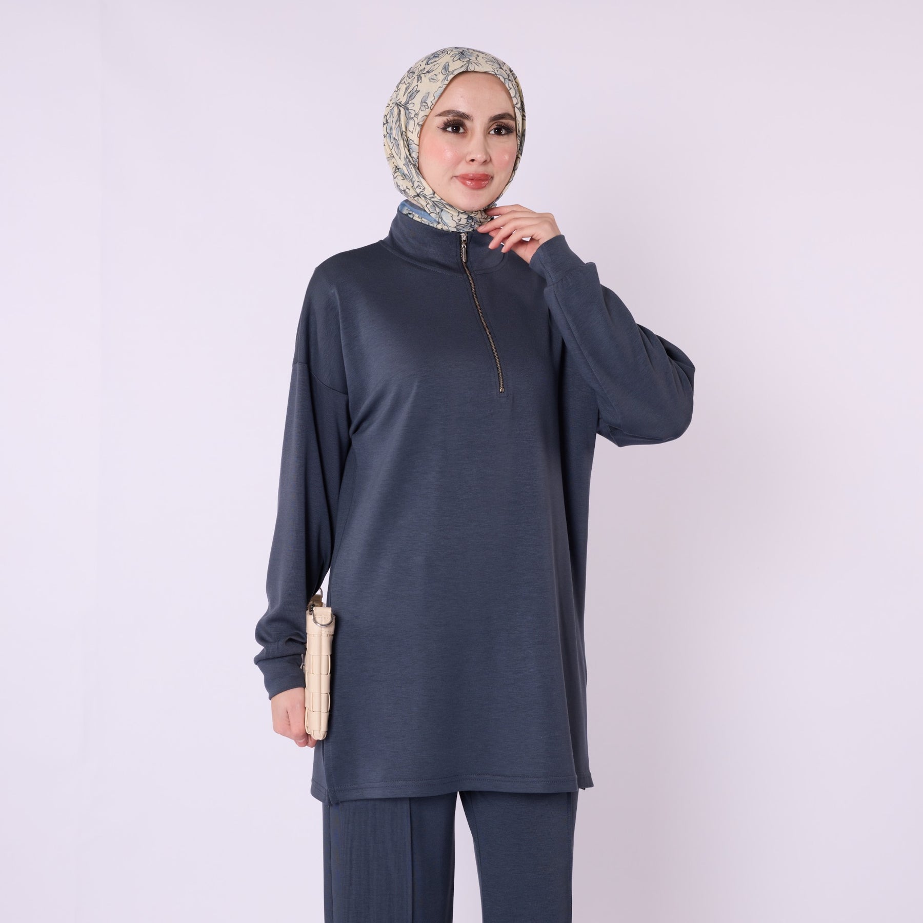 Designed for effortless everyday comfort, this two-piece set features a soft cotton-blend fabric that provides flexibility and ease of movement. The high-neck top with a half-zip offers warmth and a clean, structured look, while the trousers stand out with distinct seam detailing that highlights the crease line for a modern touch. The wide-leg silhouette enhances comfort, making the set ideal for daily wear. Available in a versatile color range including burgundy, charcoal, grey, brown, navy and black.
