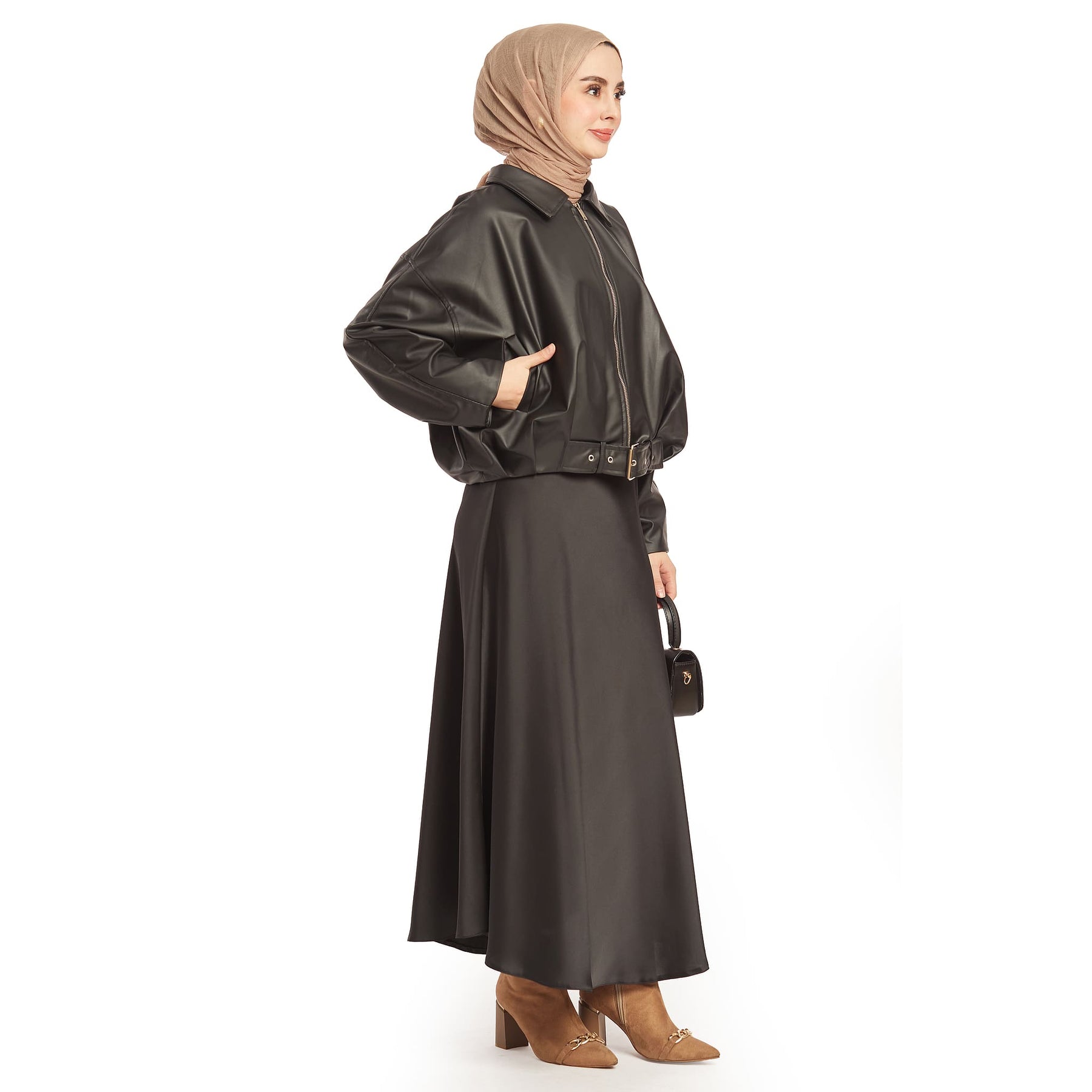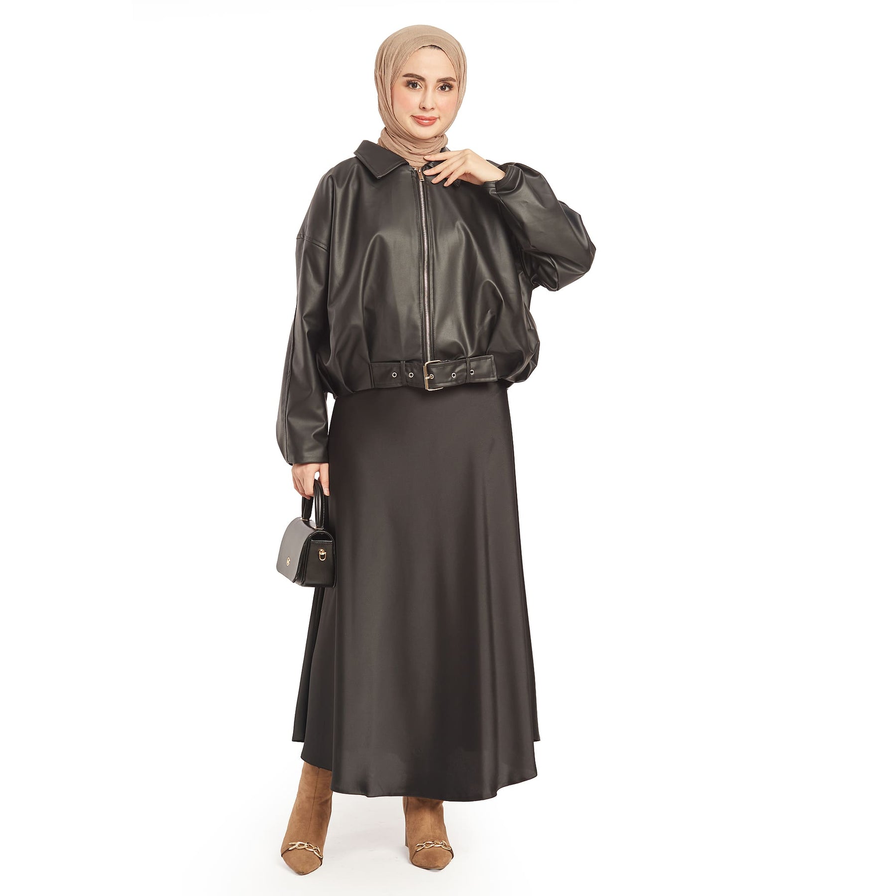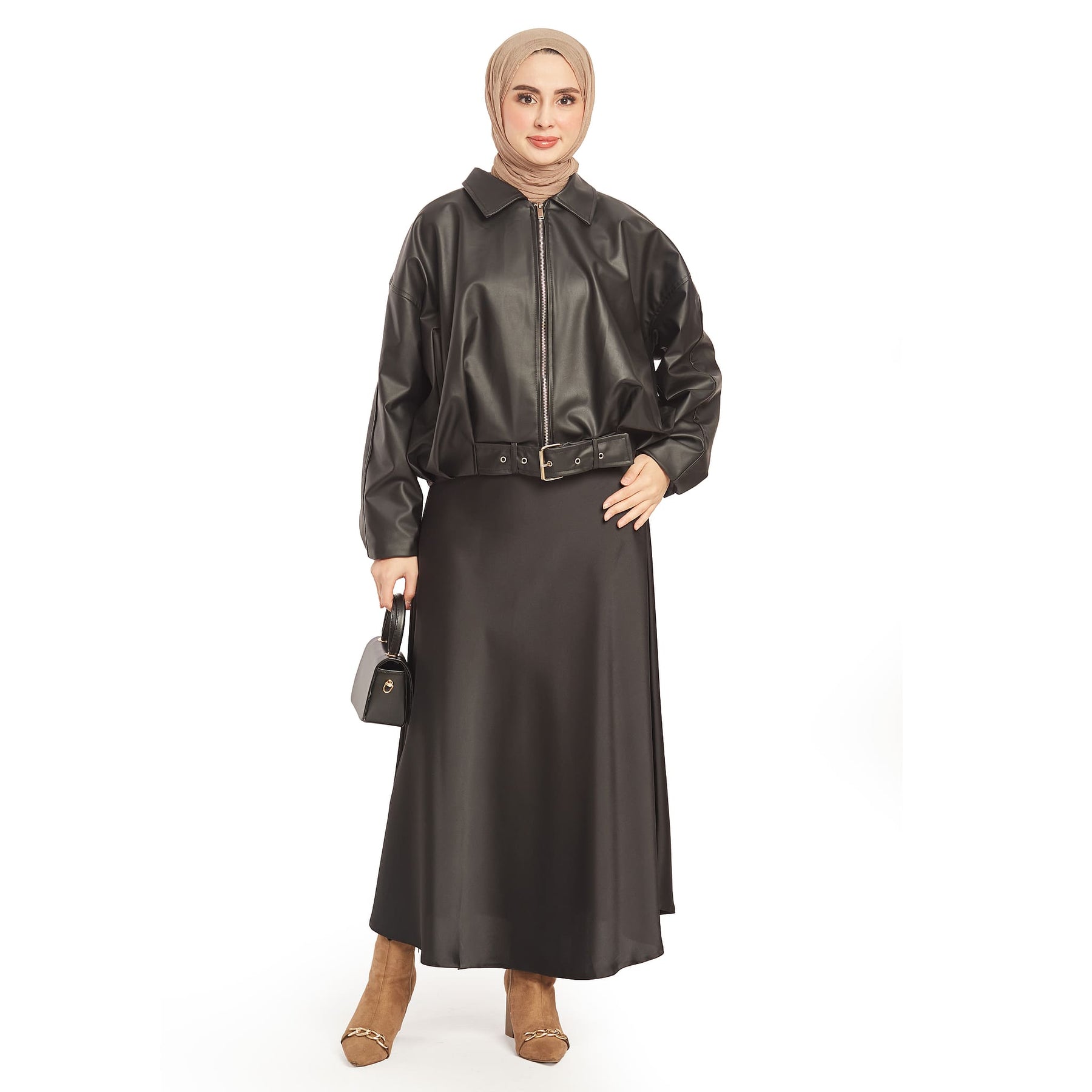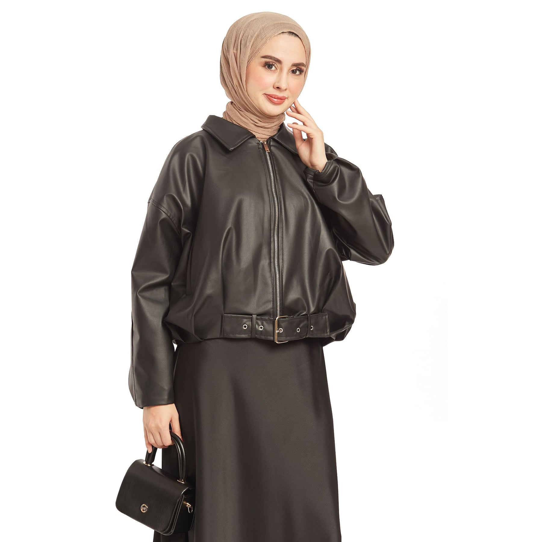 Blending a clean polo collar with the attitude of a pilot jacket, this piece brings a modern edge to everyday outfits. The front zipper offers quick on-off ease, while the buckle belt at the hem lets you fine-tune the fit and add definition. Two practical pockets keep essentials close, and the smooth 100% faux leather holds its shape for a neat, composed look throughout the day. Style it with tees, lightweight knits or shirts; pair with denim for casual vibes or tailored trousers for a sharper feel.