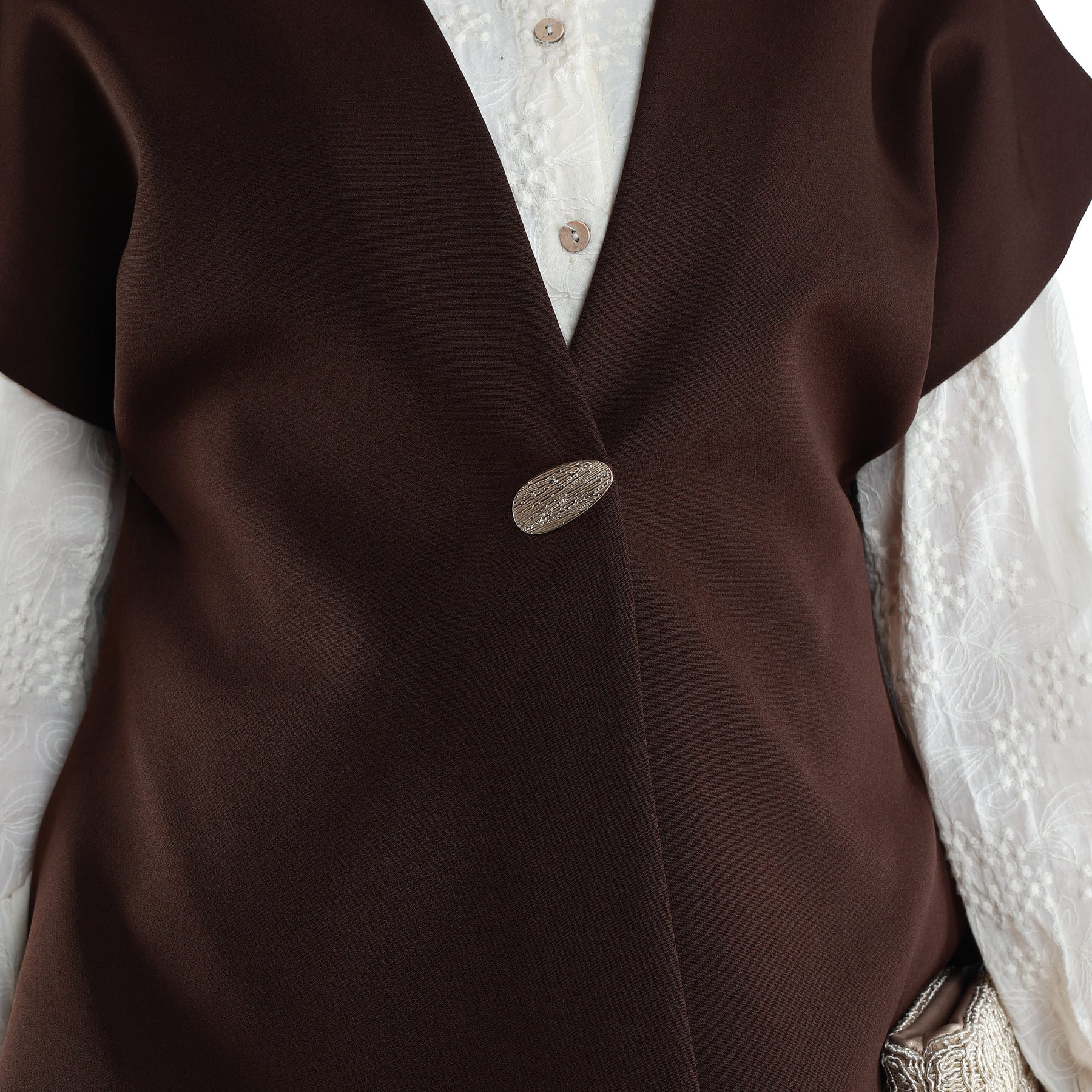 This dropped-shoulder single-button blazer blends clean tailoring with a contemporary silhouette for versatile wear—from everyday outfits to polished evening looks. The single-button closure lends a refined, minimalist finish, while the relaxed shoulder line creates an easy drape and comfortable movement. Layer over lightweight knits, blouses or shirts; pair with tailored trousers, skirts or straight-leg denim for effortless styling. In classic black and rich brown, it’s a timeless wardrobe staple that works across seasons.