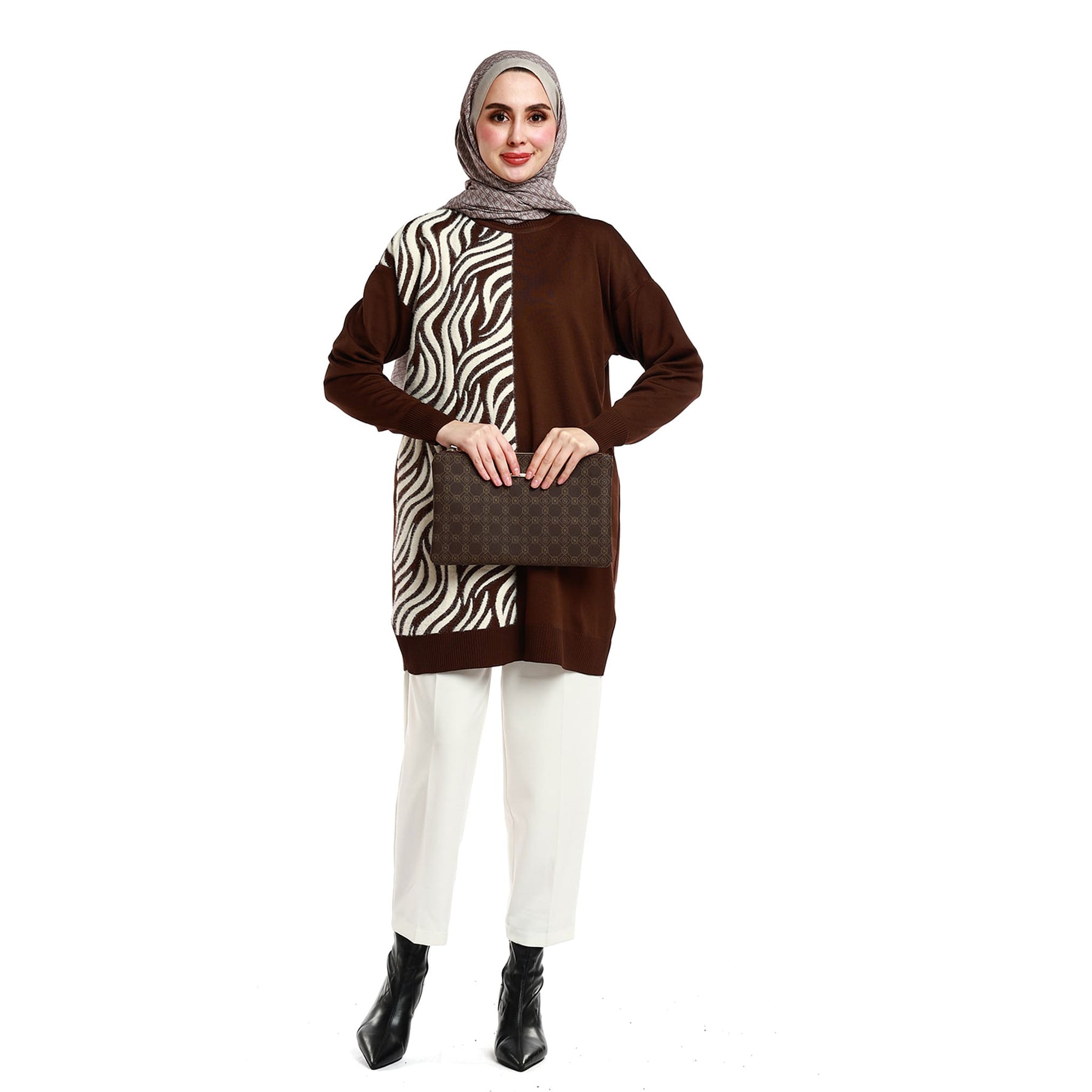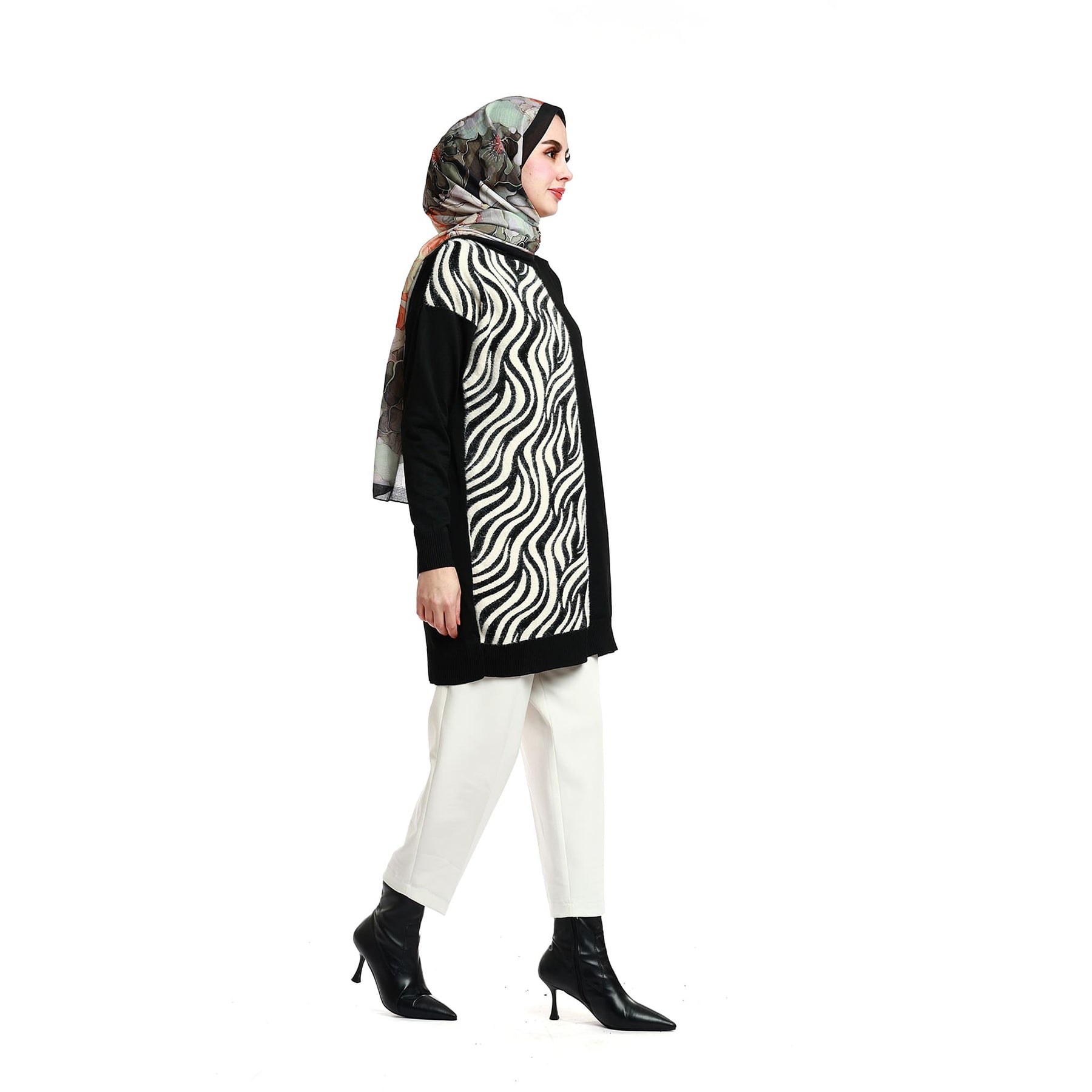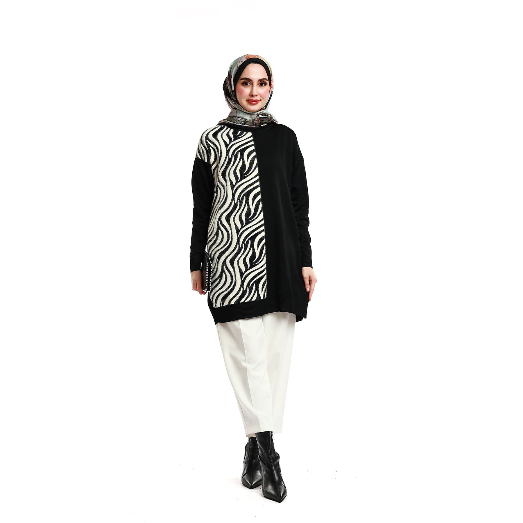 • Model: Zebra patterned relaxed-fit knit tunic