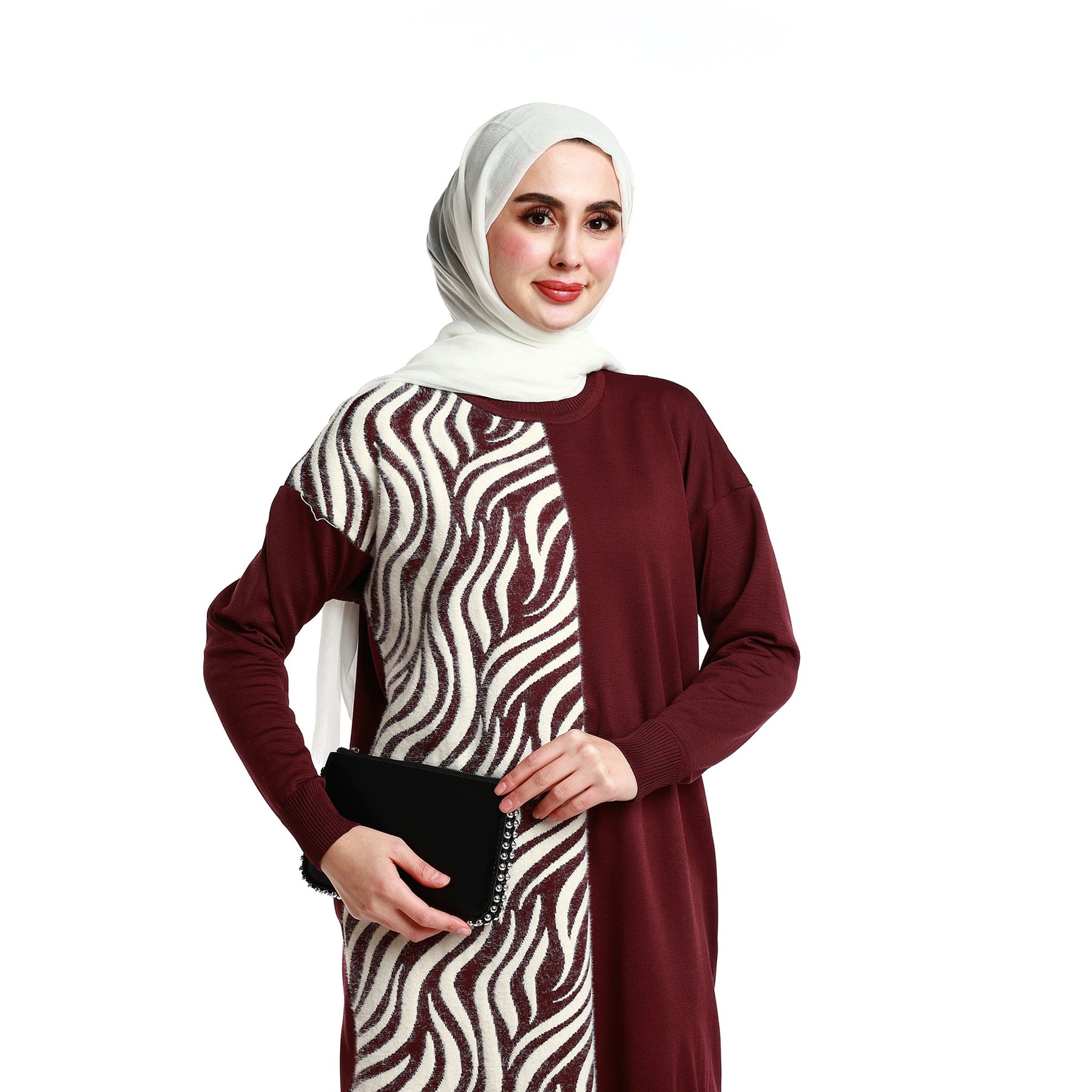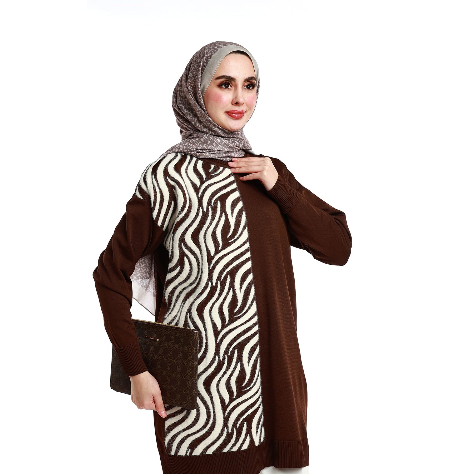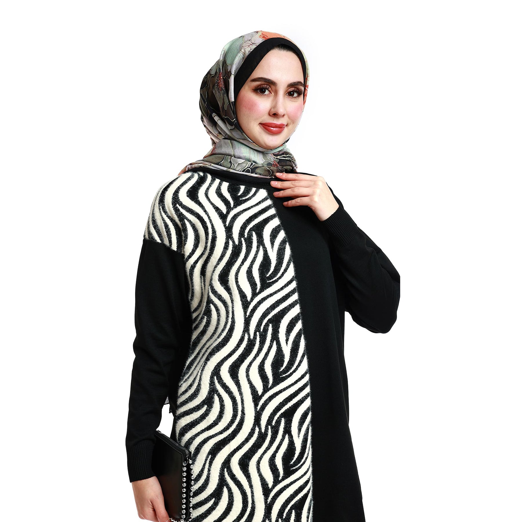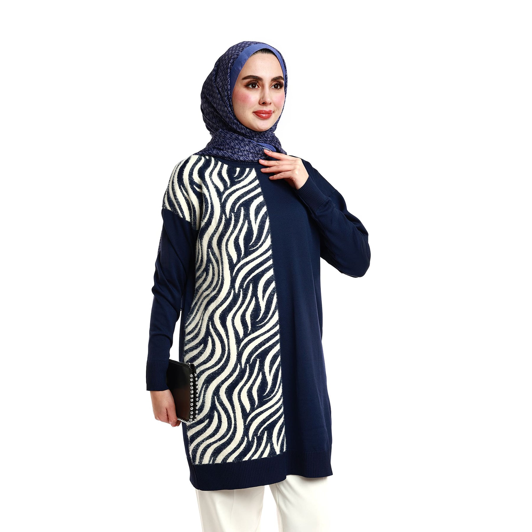 • Model: Zebra patterned relaxed-fit knit tunic