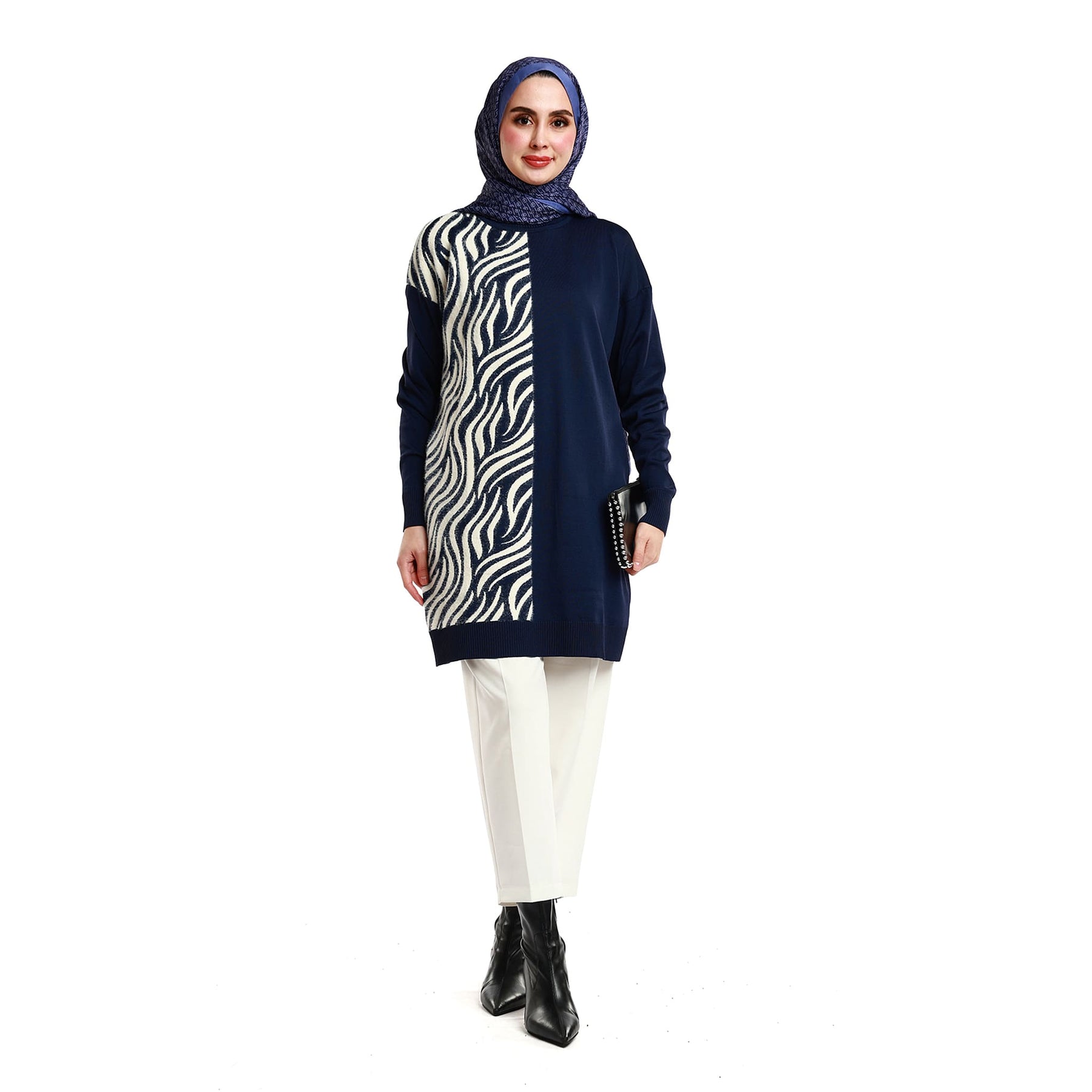 Zebra Pattern Relaxed Fit Knit Tunic