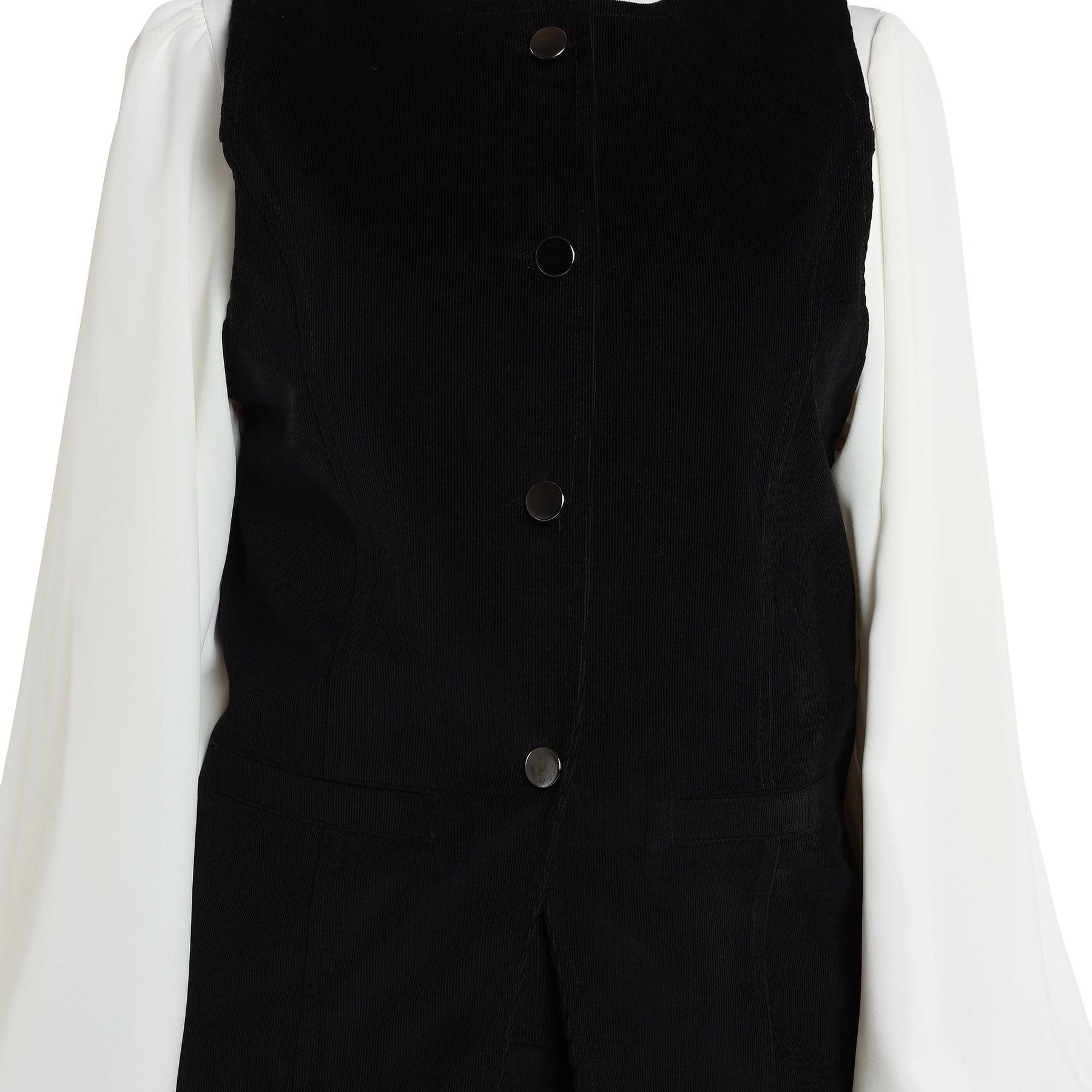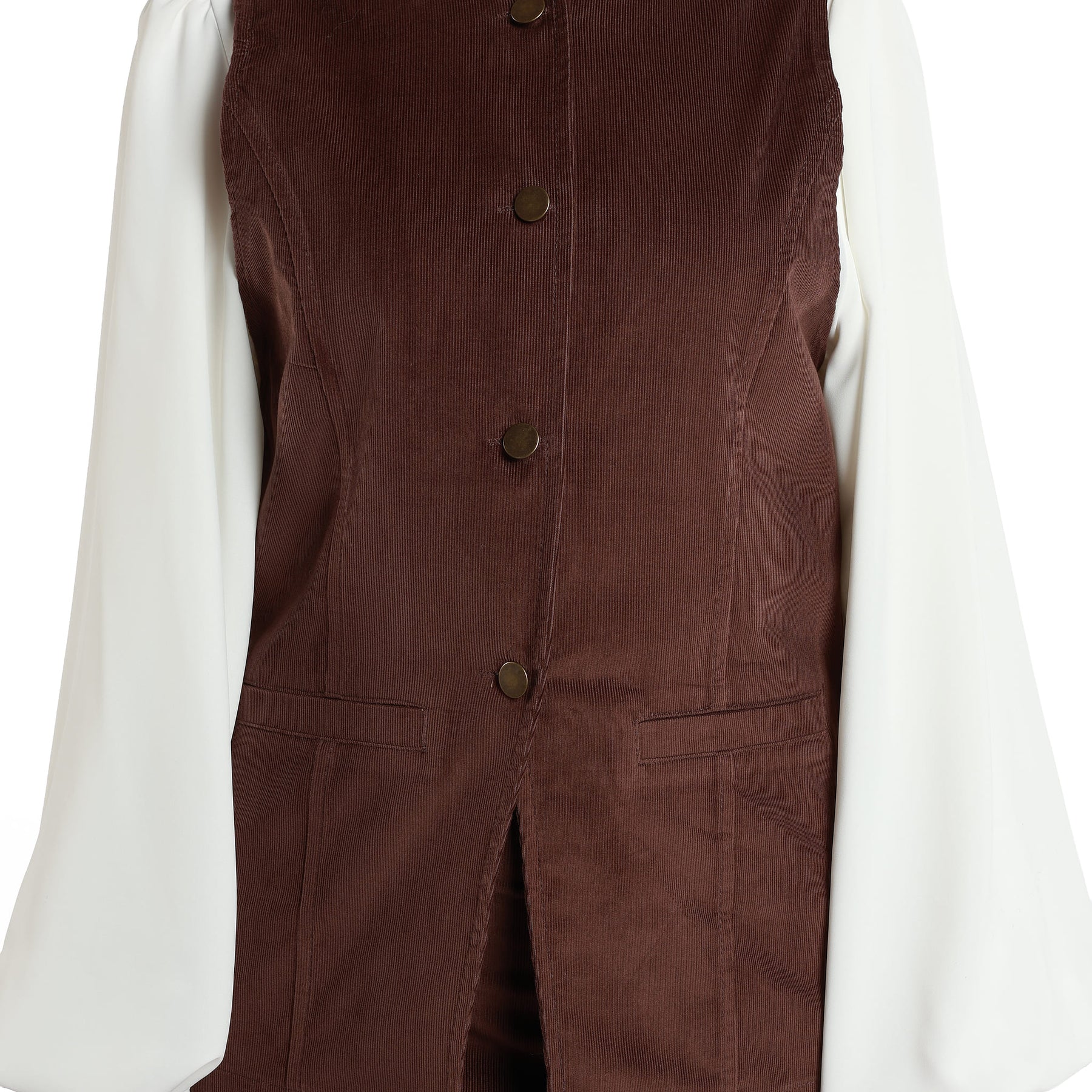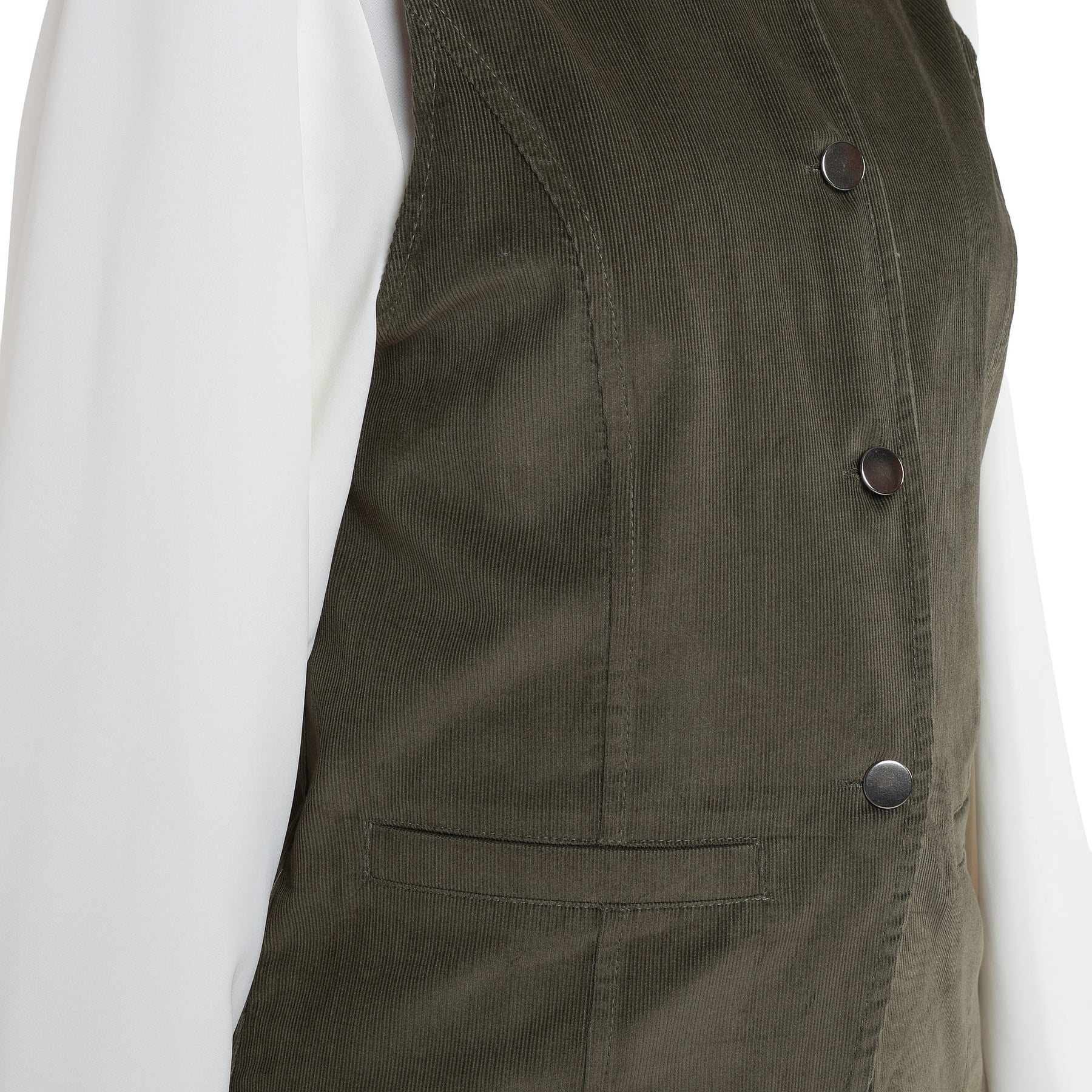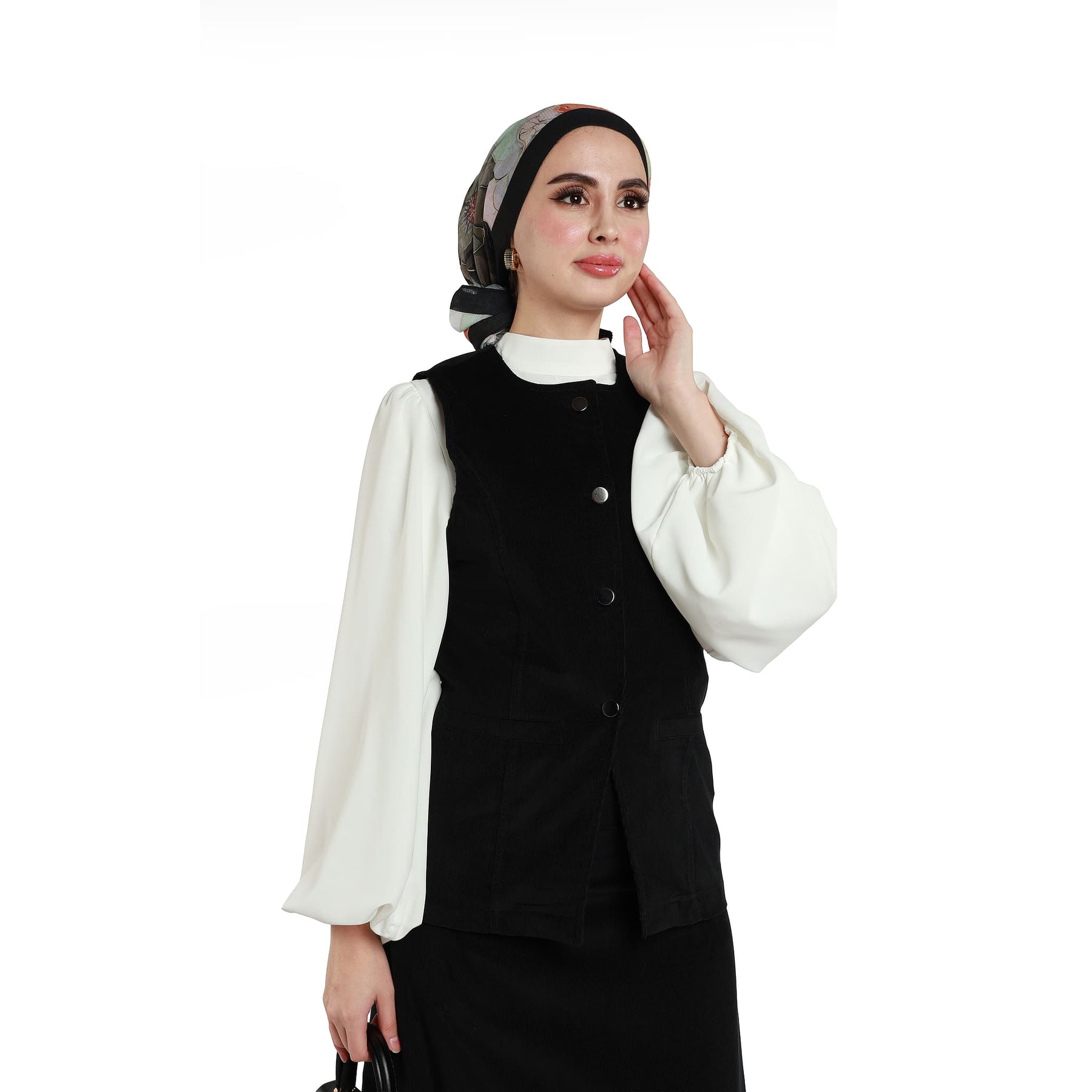 This velvet vest and skirt set offers an elegant yet comfortable look for both everyday wear and special occasions. Made from 100% cotton, it feels soft on the skin. Available in black, beige, brown and green, it styles easily with different blouses and accessories. The buttoned vest features decorative pocket flaps for a refined finish.