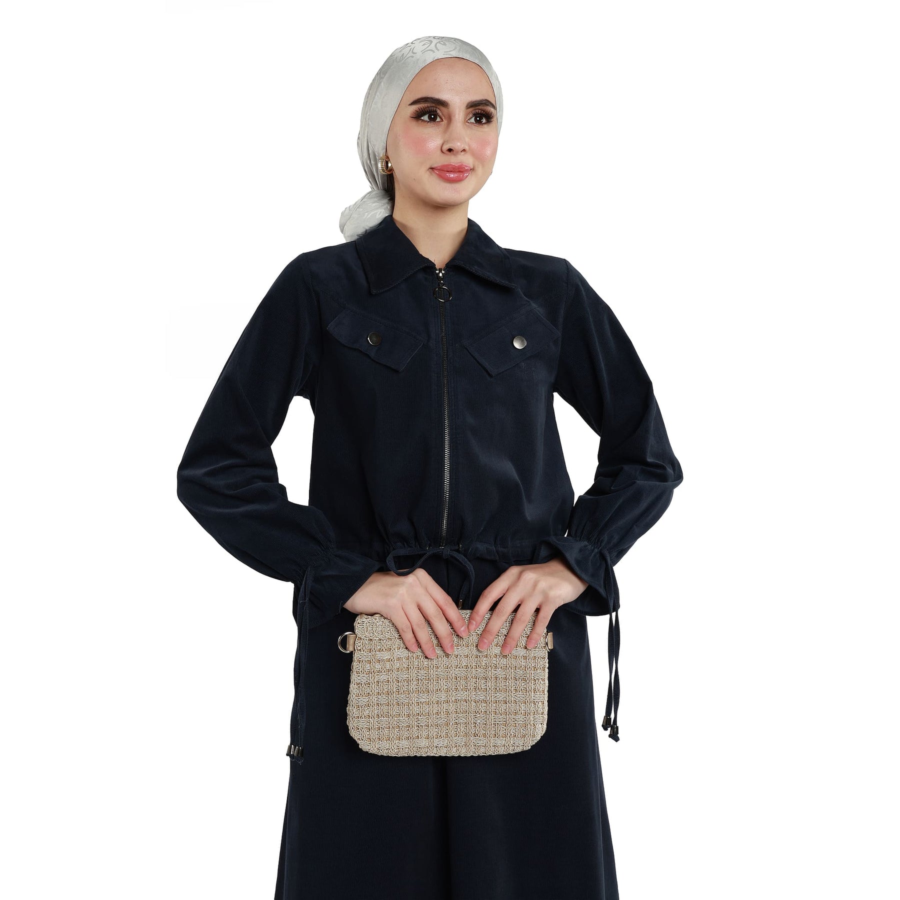 This velvet set combines comfort and style with its soft touch and polo-collar zip jacket. Made from 100% cotton velvet, it feels gentle on the skin. Available in black, beige, brown and navy, it’s perfect for relaxed everyday looks. Ruched details on the jacket add a modern, sporty touch.