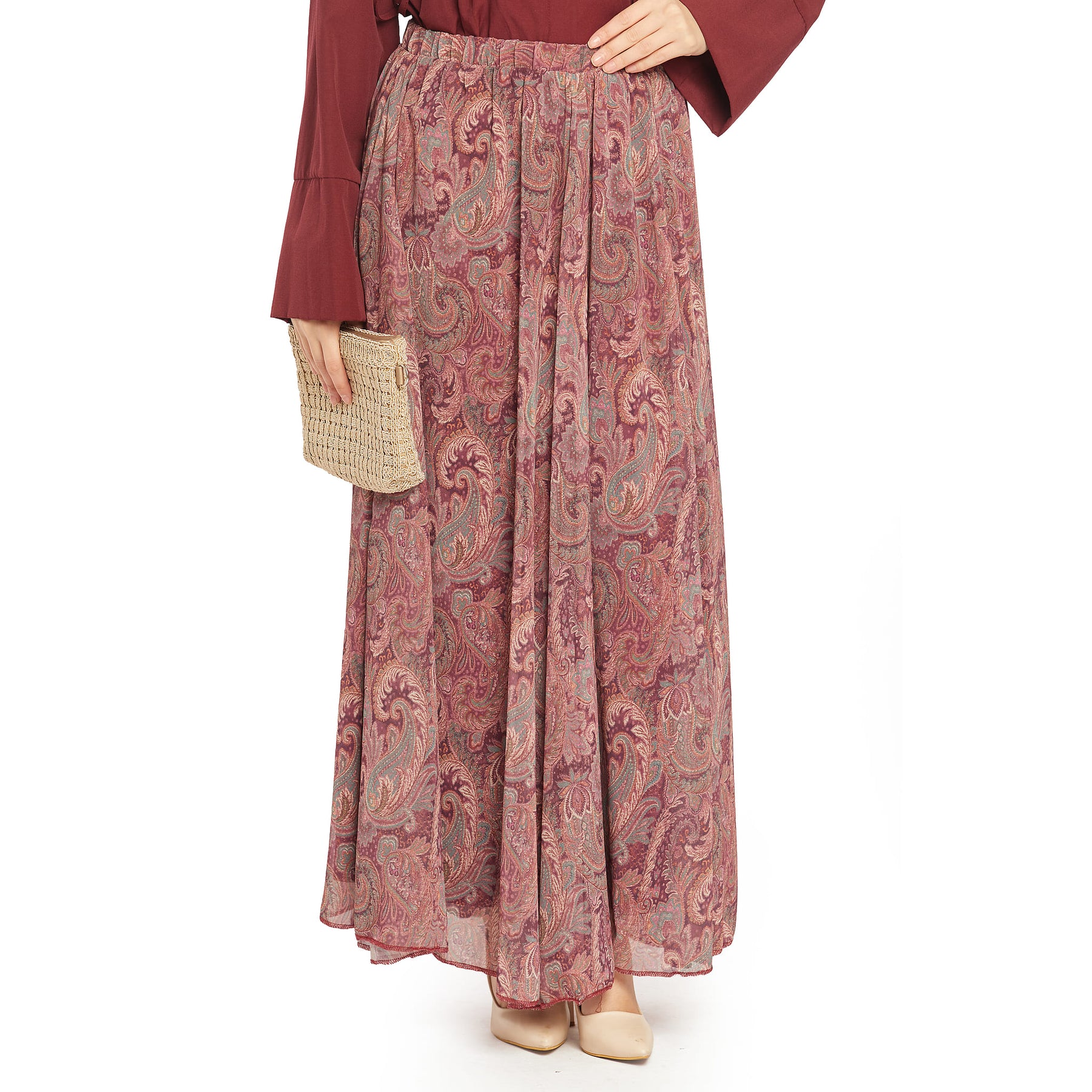 Model: Patterned pleated chiffon skirt