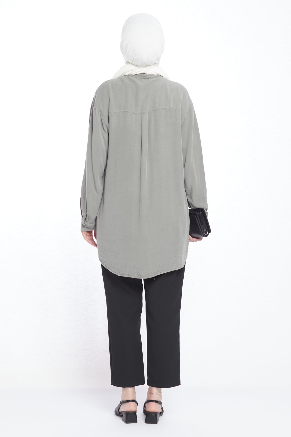 The modern design oversized women’s shirt is designed for both comfort and style. Crafted from 100% Tencel fabric, it offers a soft touch and breathable structure, making it ideal for spring and summer wear. The oversized fit creates a relaxed yet chic look, while its wide range of color options allows versatile styling for any occasion.