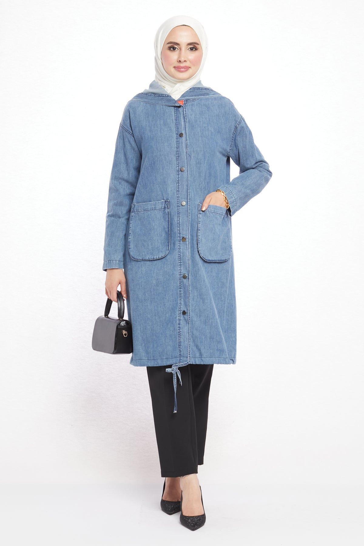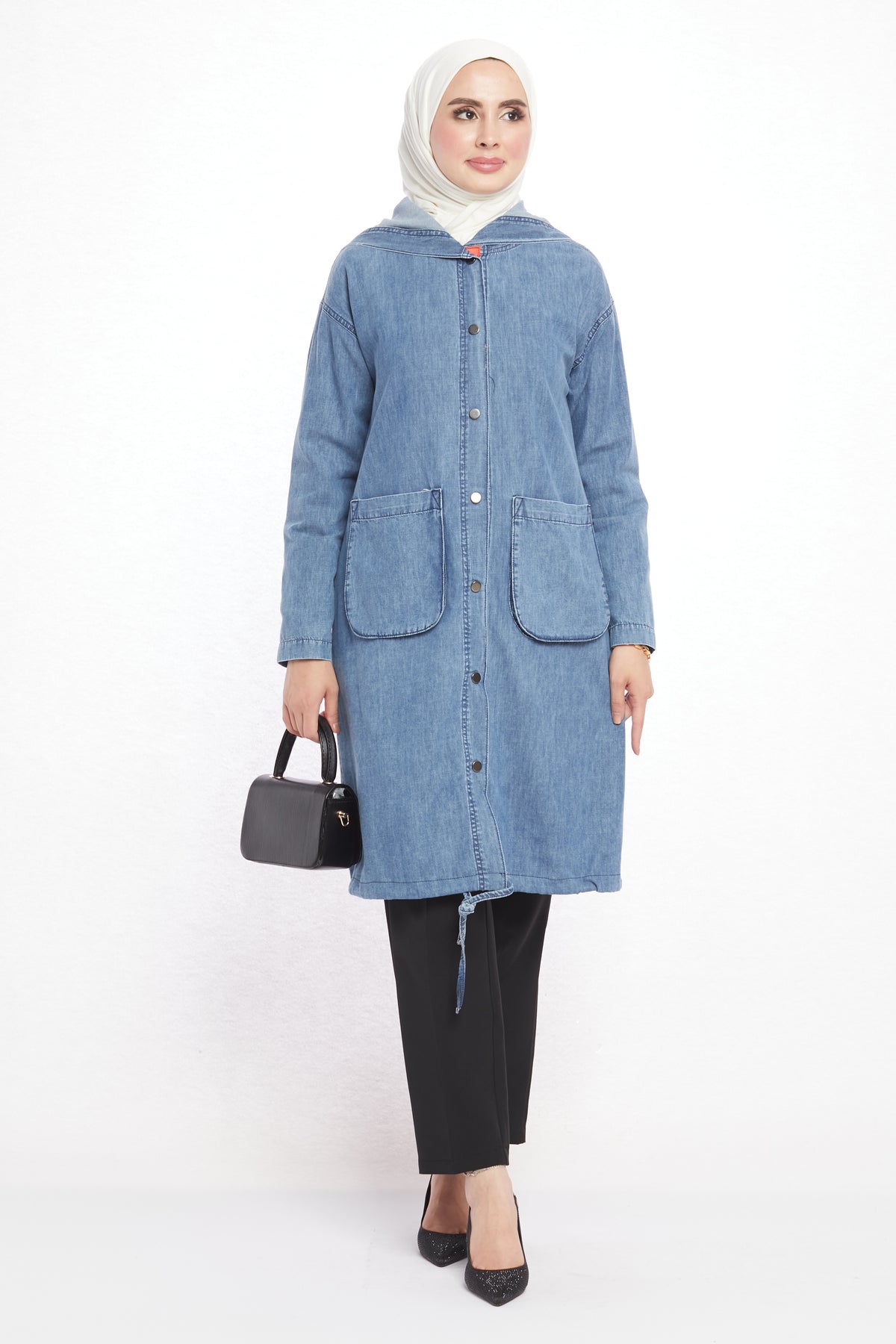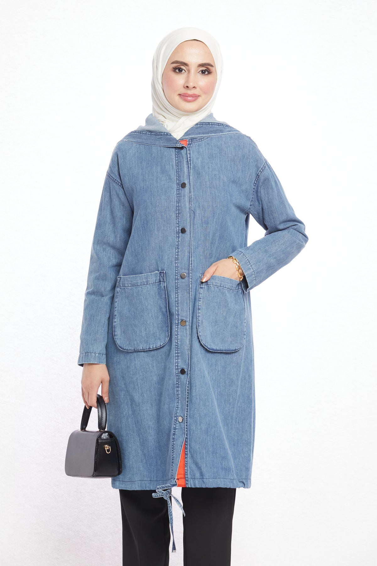 The hooded denim tunic with pockets combines comfort and modern style, making it a perfect choice for daily wear. Made from 100% cotton fabric, it offers breathability, lightness, and long-lasting comfort. The hood detail gives it a sporty look, while the practical side pockets add functionality. With its easy “throw-on-and-go” design, it ensures effortless everyday elegance.