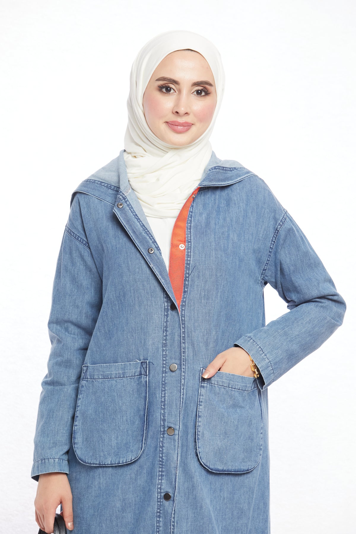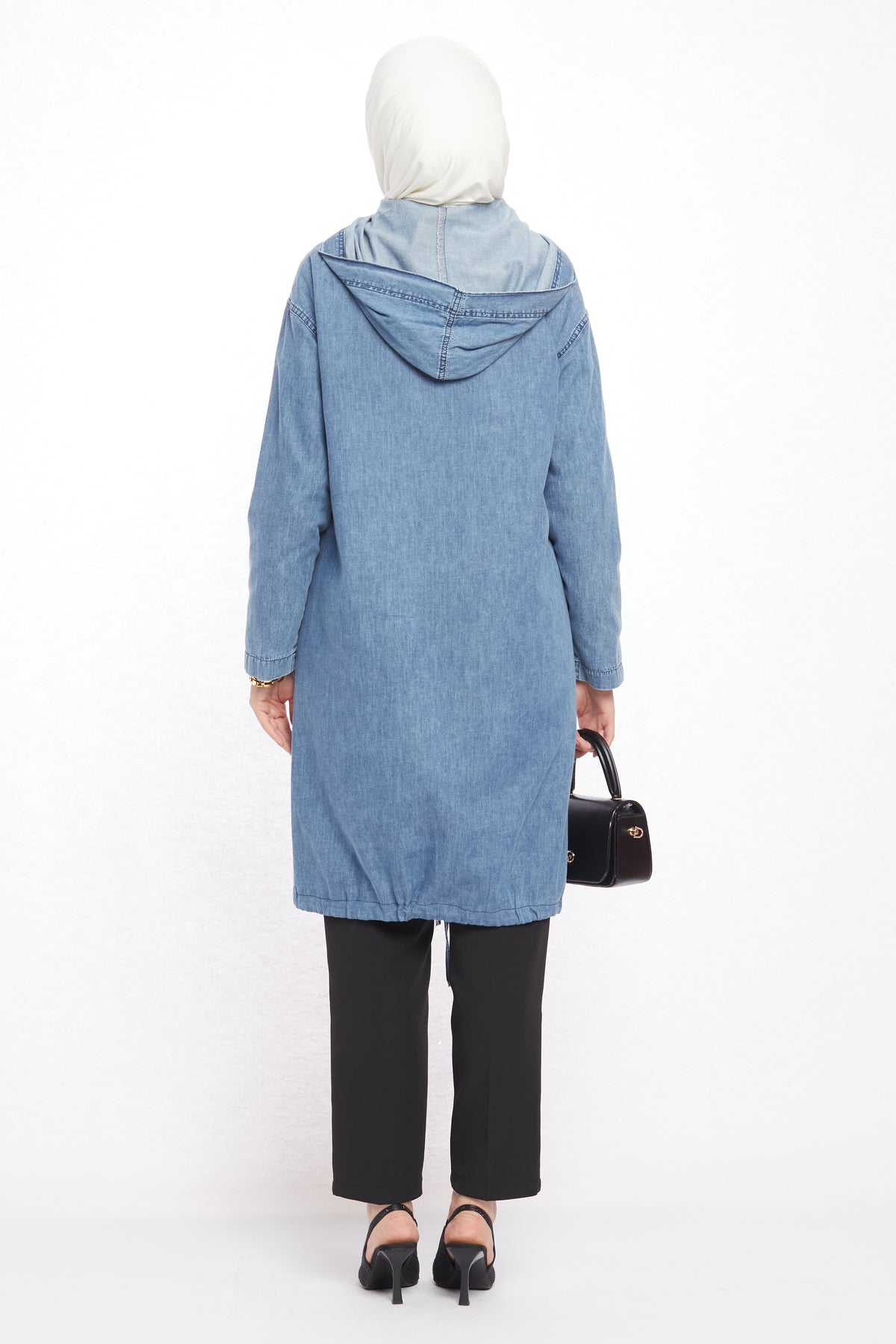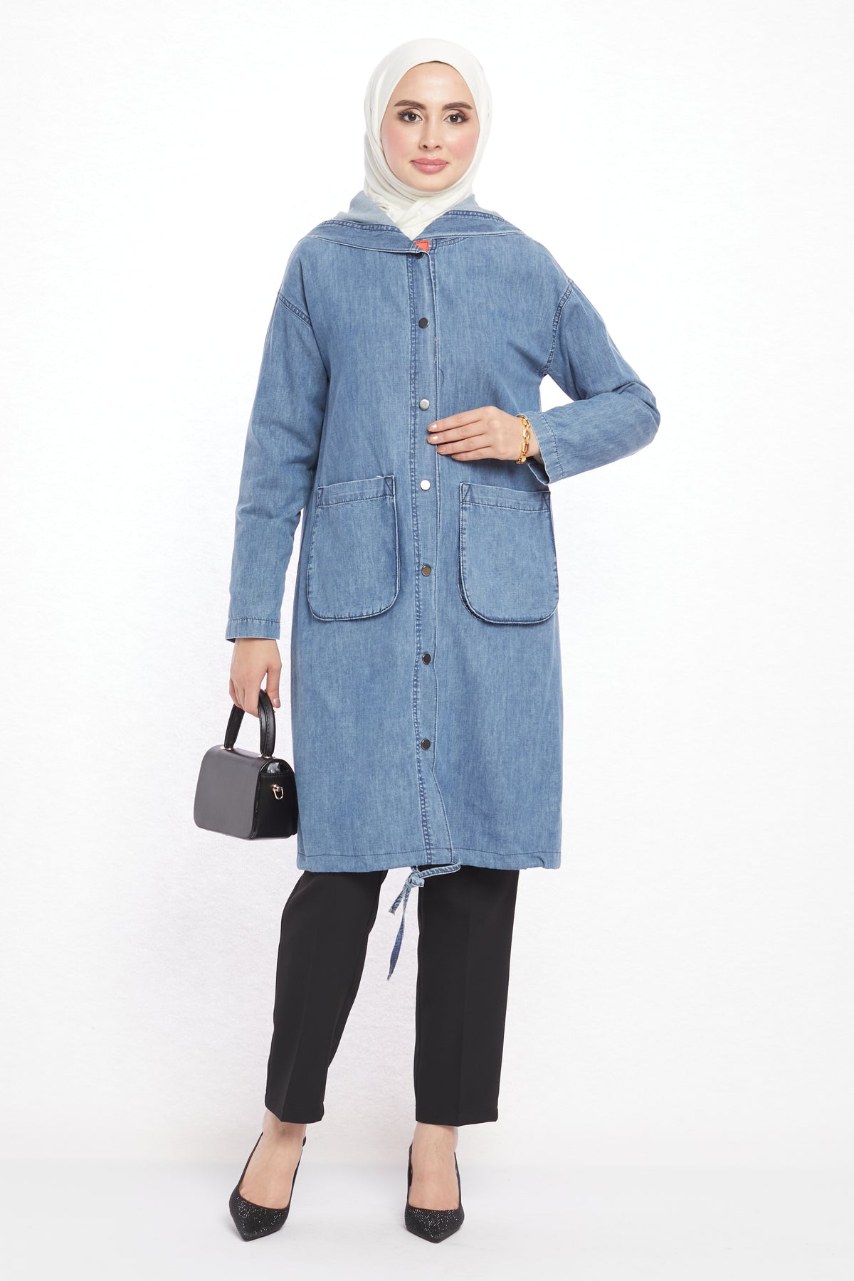 The hooded denim tunic with pockets combines comfort and modern style, making it a perfect choice for daily wear. Made from 100% cotton fabric, it offers breathability, lightness, and long-lasting comfort. The hood detail gives it a sporty look, while the practical side pockets add functionality. With its easy “throw-on-and-go” design, it ensures effortless everyday elegance.
