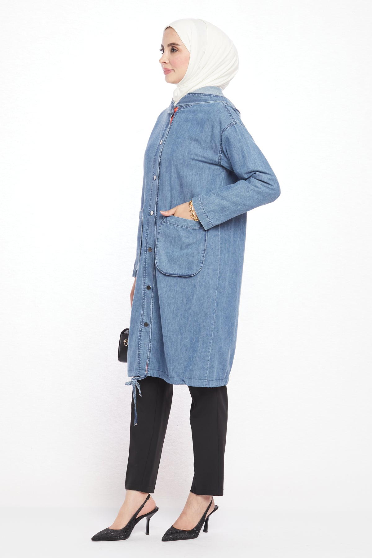 Available in navy blue and light blue color options, this tunic stands out among casual denim tunic styles, ideal for transitional seasons as well as relaxed daily outfits.