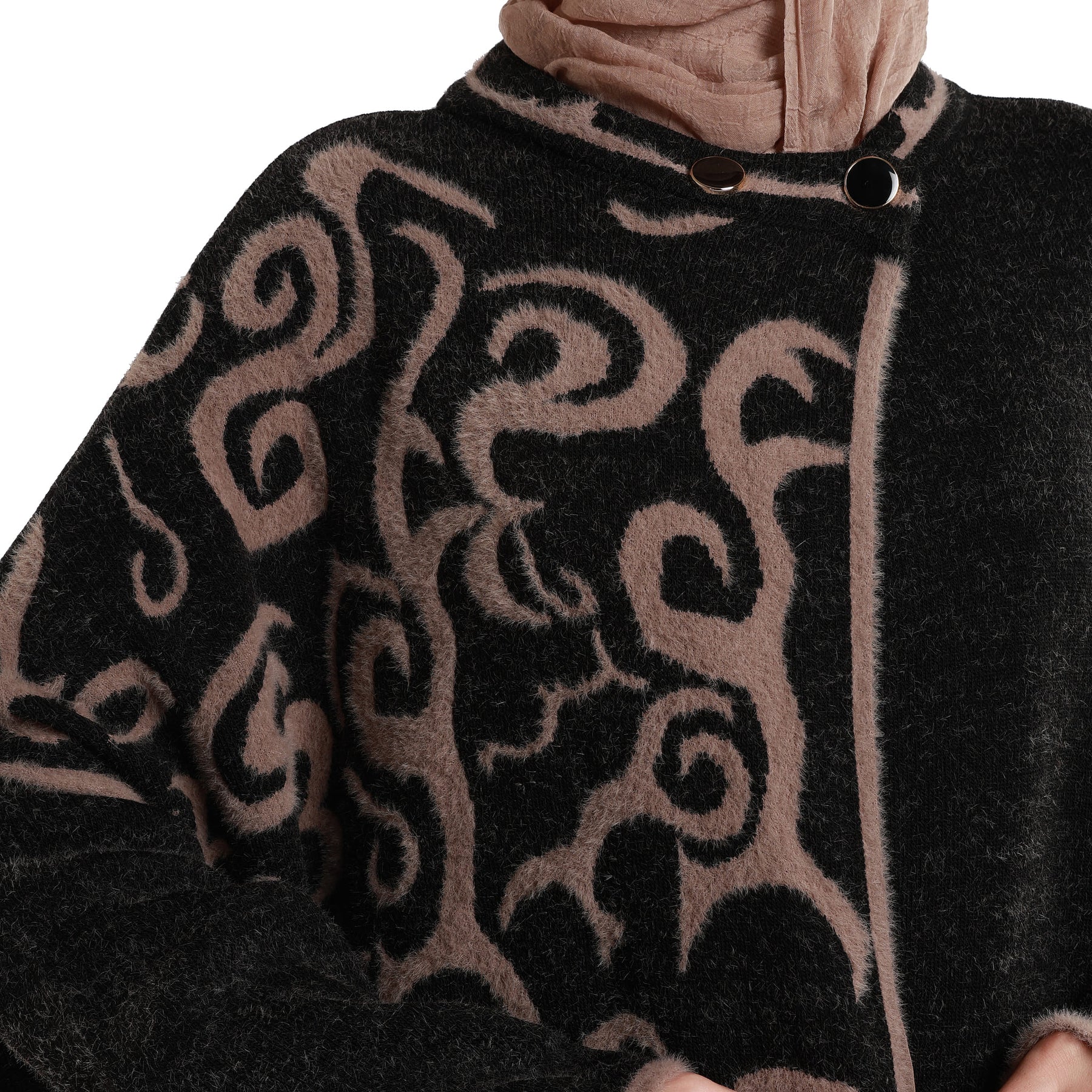 Asymmetric patterns give the poncho cardigan a dynamic and contemporary character, allowing it to instantly elevate even the simplest outfits. The dropped sleeve construction enhances ease of movement and reinforces the relaxed look, making it ideal for layering over jeans, tailored trousers, dresses or knit sets. Available in beige-beige, black-black, black, brown and charcoal, it blends seamlessly into neutral wardrobes and can be styled with boots, loafers or sneakers depending on the occasion. Whether you’re heading to the office, meeting friends or spending a relaxed day in the city, the Relaxed Stand Collar Poncho Cardigan is a chic, comfortable piece you’ll want to reach for throughout the season.