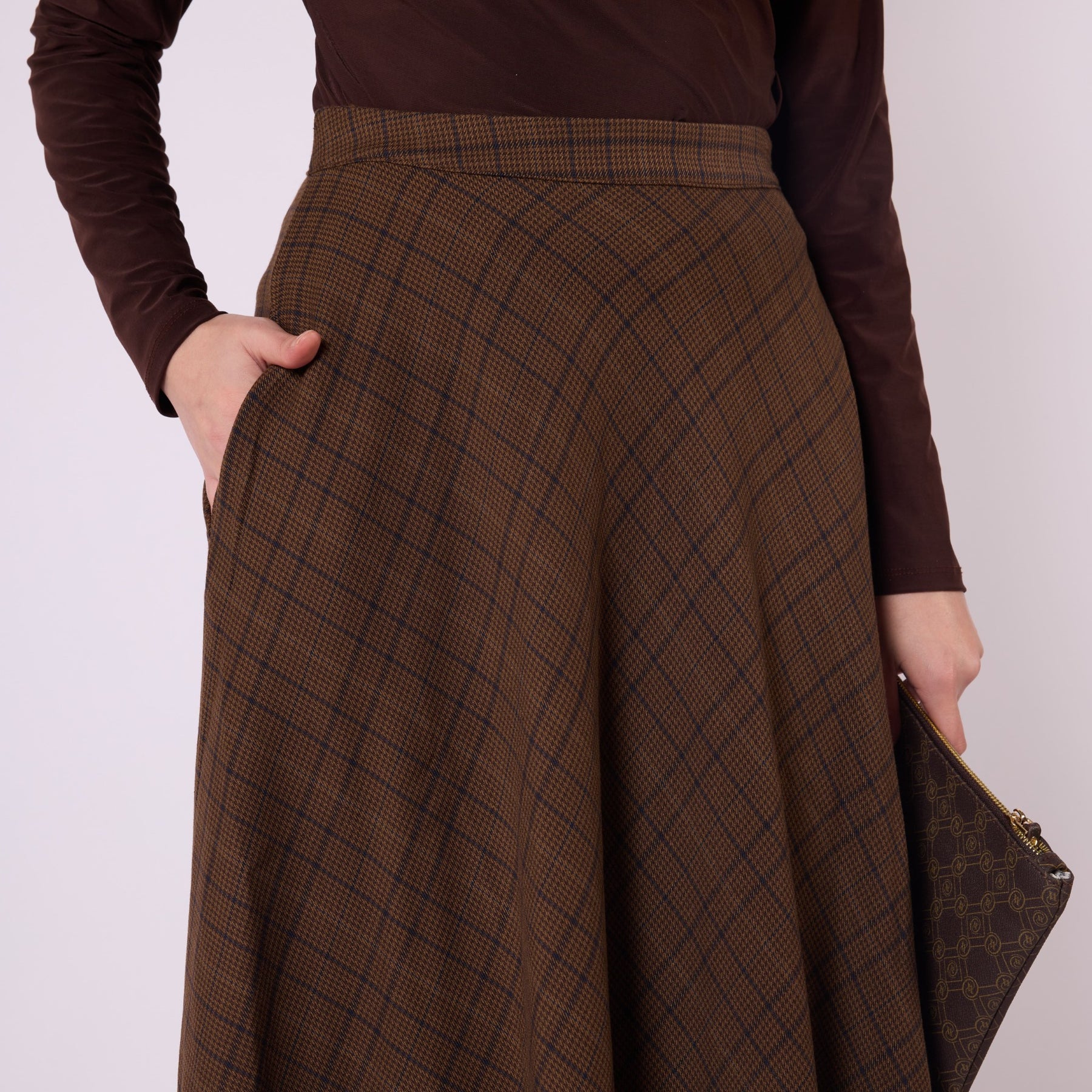 Blending a classic plaid pattern with a sleek long silhouette, this skirt offers both style and comfort for everyday wear and office outfits. The side zipper provides easy dressing, while two functional pockets enhance practicality. Its unlined construction keeps it light and comfortable, ideal for creating warm and stylish winter looks. Pair it effortlessly with knitwear, shirts or long cardigans for a polished, timeless outfit.